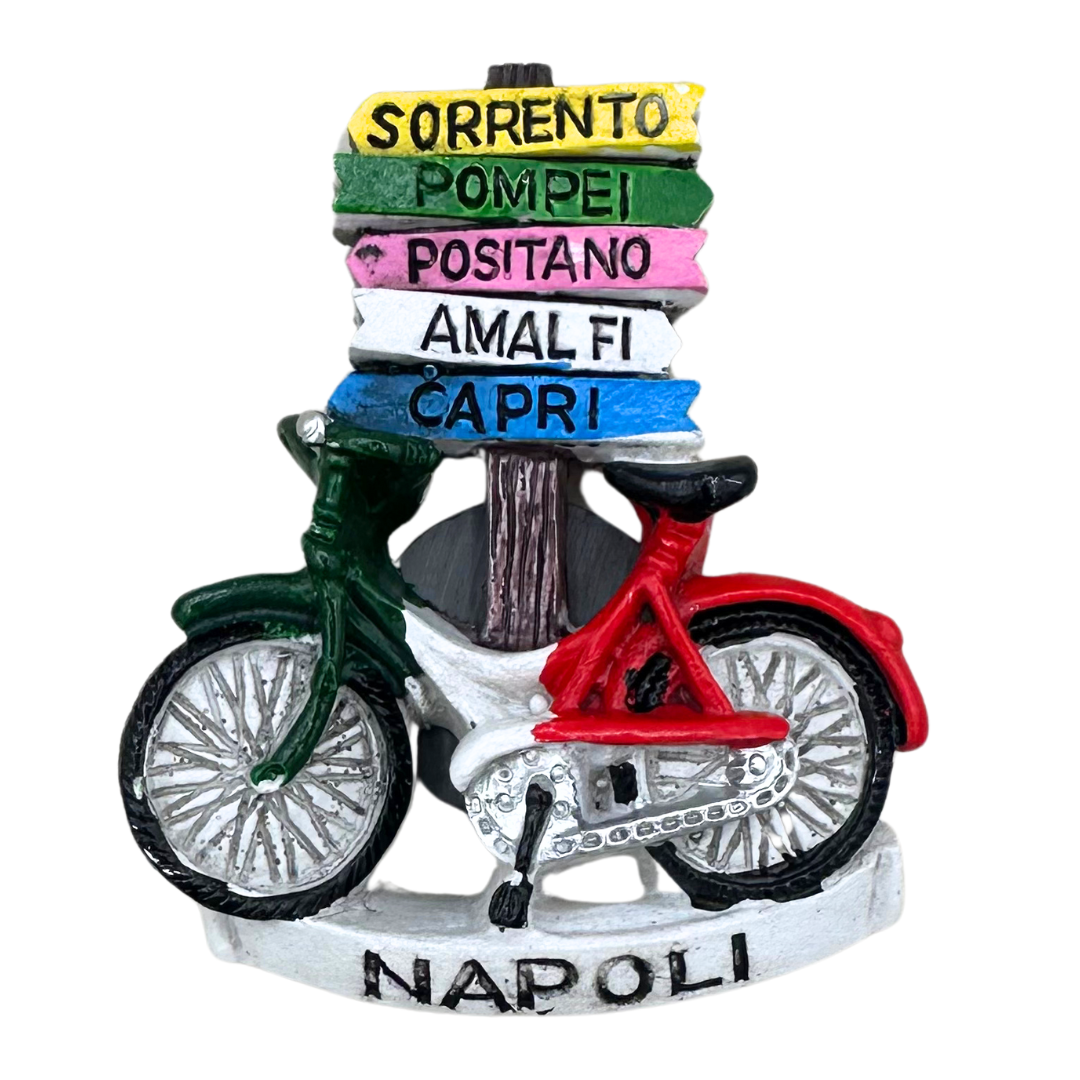 南イタリア観光地の標識と、イタリアカラーの自転車のデザイン。