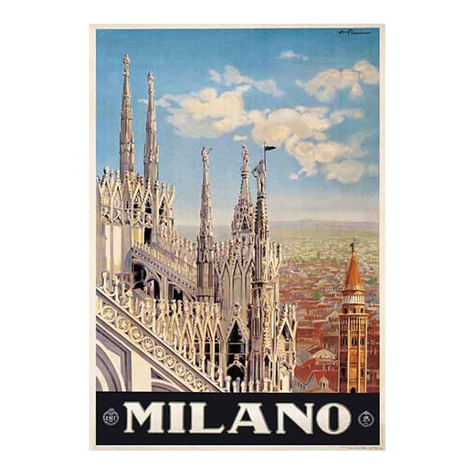Vintage tourist poster featuring the Duomo di Milano (Milan Cathedral).