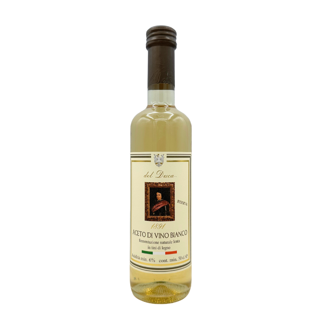 White wine vinegar made using the traditional method of slowly fermenting wine into acetic acid in wooden barrels.