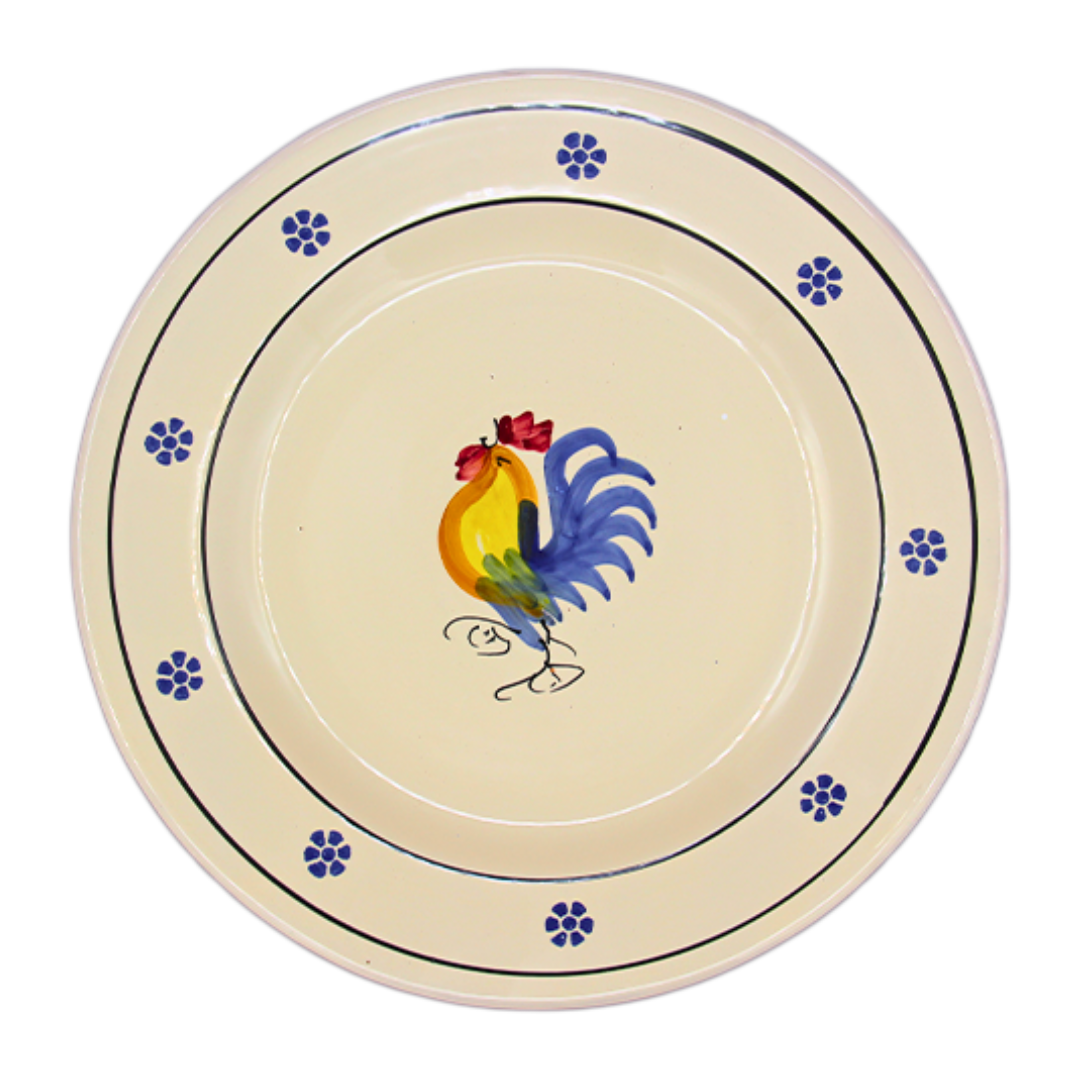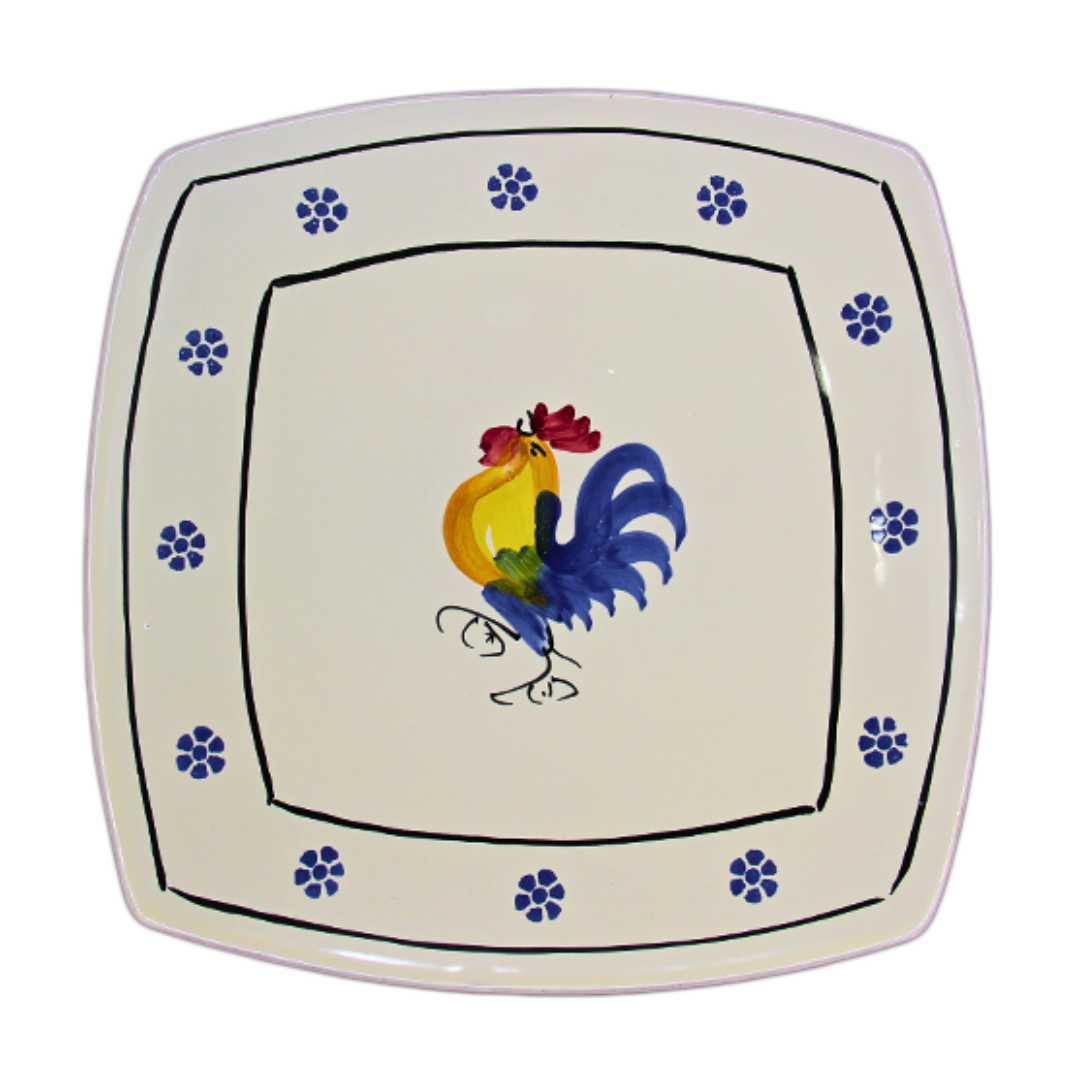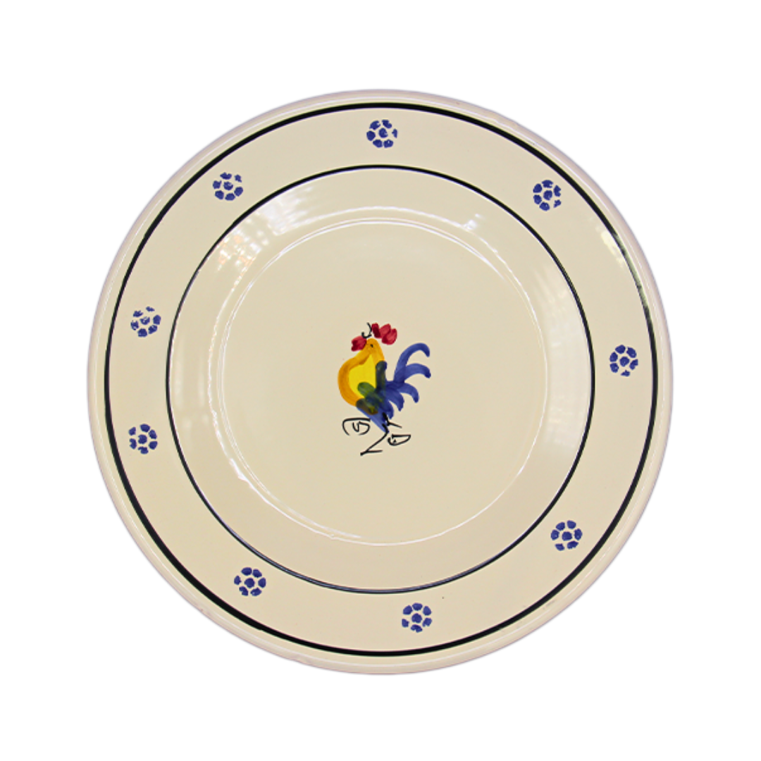 プーリアの伝統陶器で、下地の釉薬はクリーム色をしているため、独特な温かみを感じる色合いになります。 魔除けの象徴とされるにわとりと星形が描かれています。