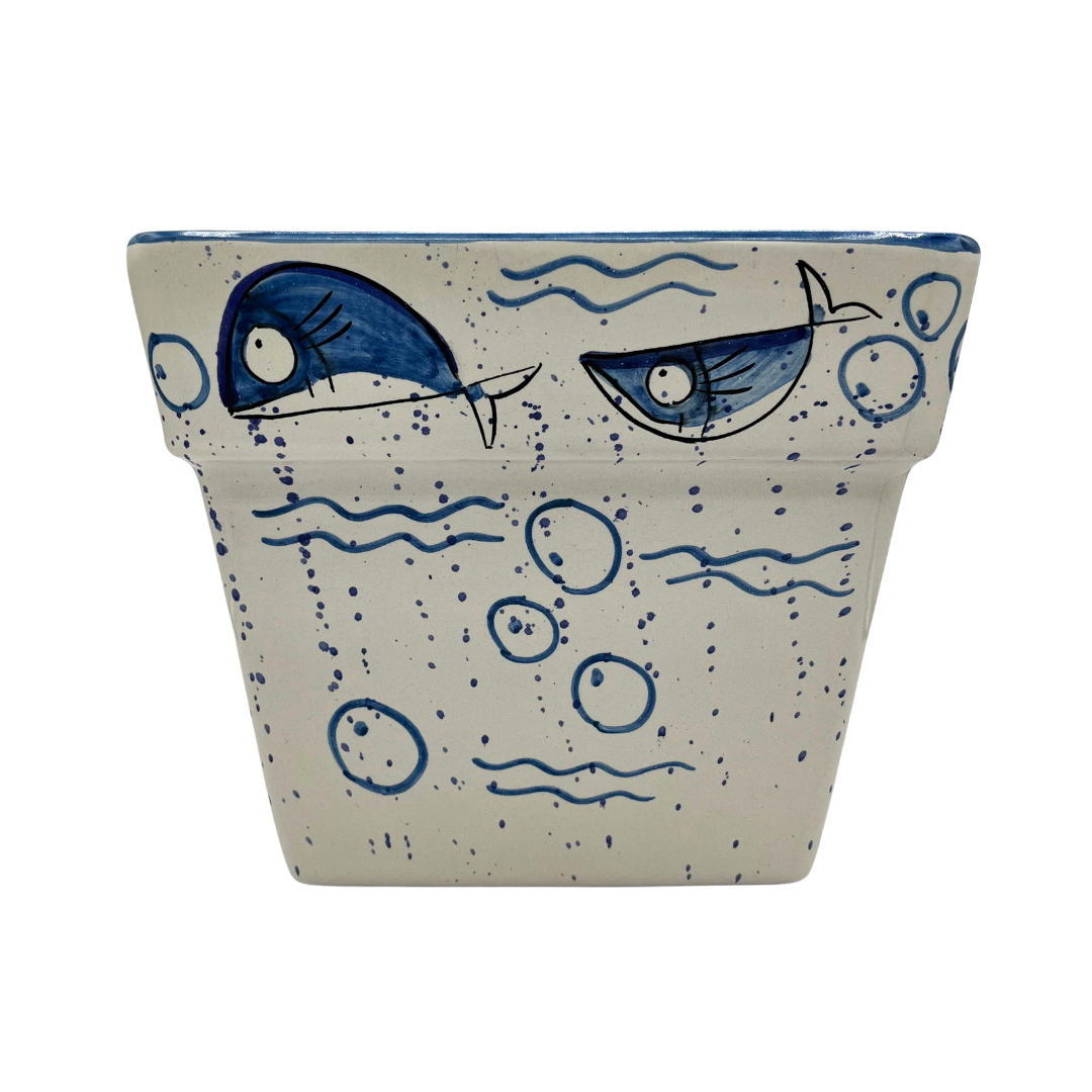 イワシの描かれたプランター 底穴が空いていますので直上できます。