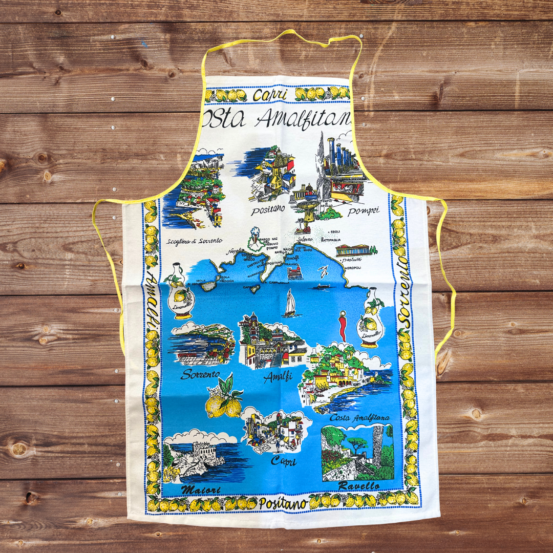 アマルフィ海岸の風景が描かれたエプロンです。