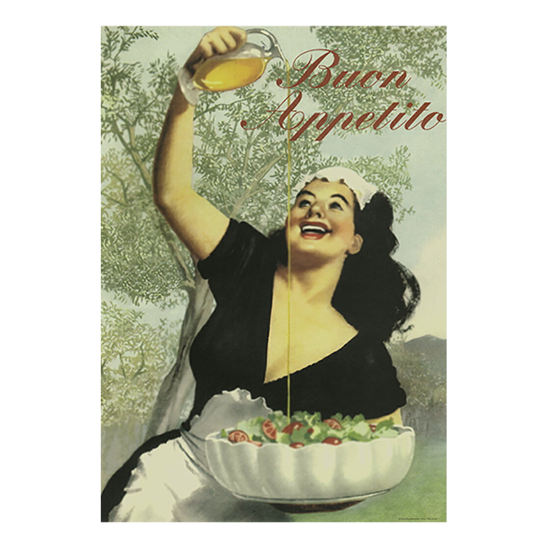 1950年代のオリーブオイルのレトロ&ヴィンテージな広告ポスター。
