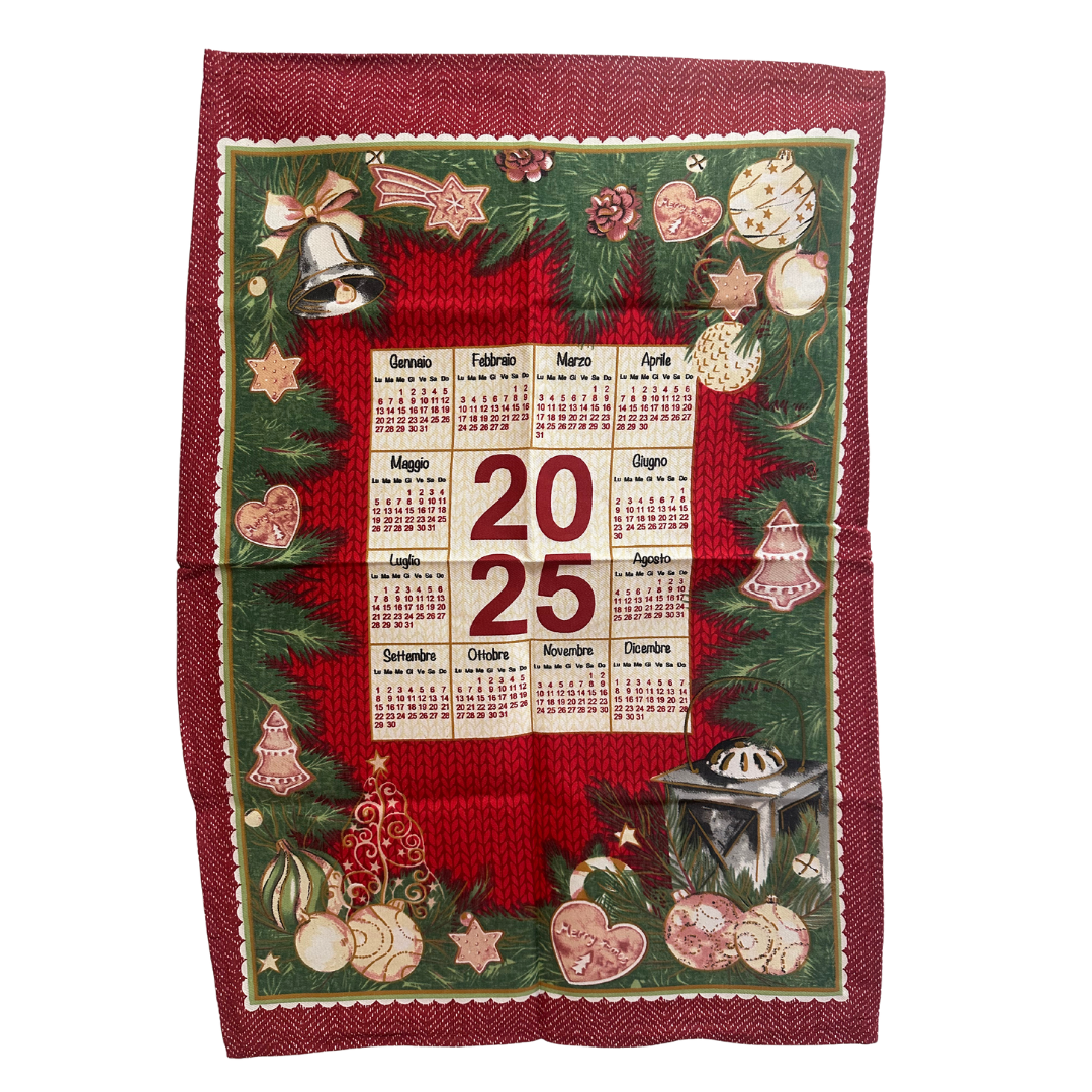2025年のカレンダーになった、クリスマスデザインのタペストリーです。