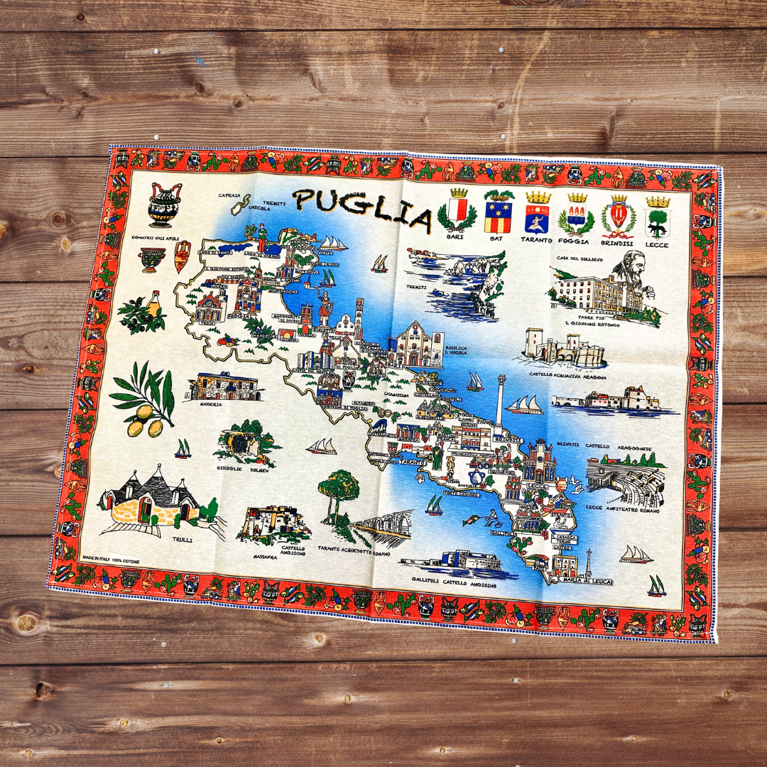 プーリア州の有名な土地、建築物が描かれています。