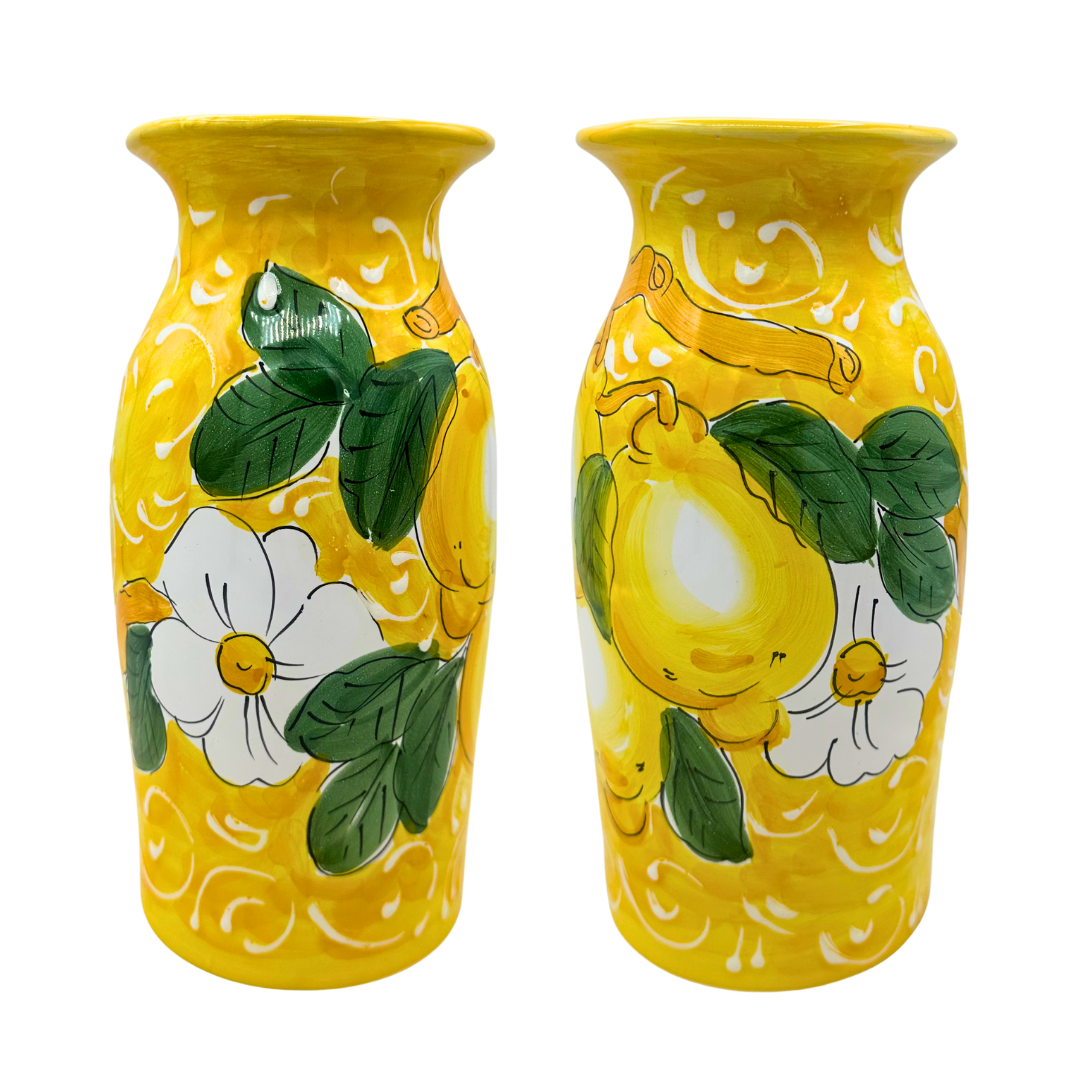 南イタリアらしいレモンと花の絵が描かれた陶器製の花器です。