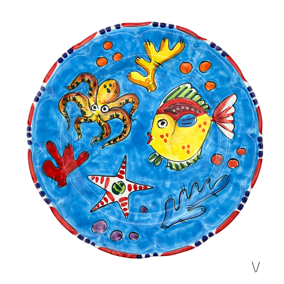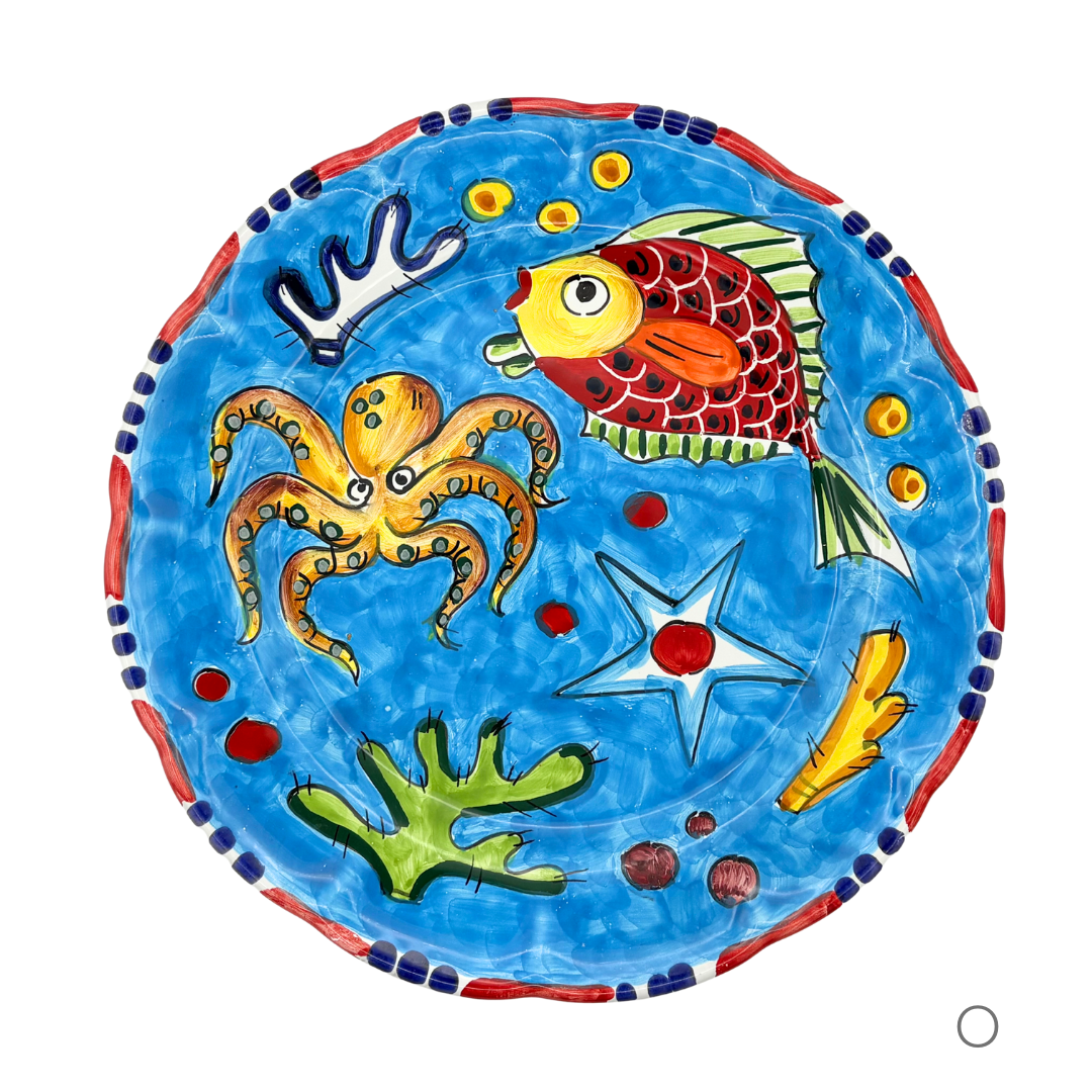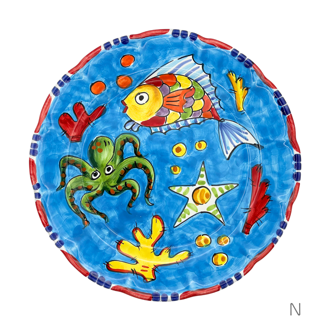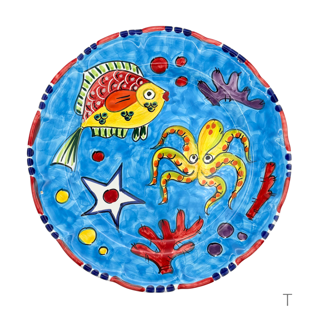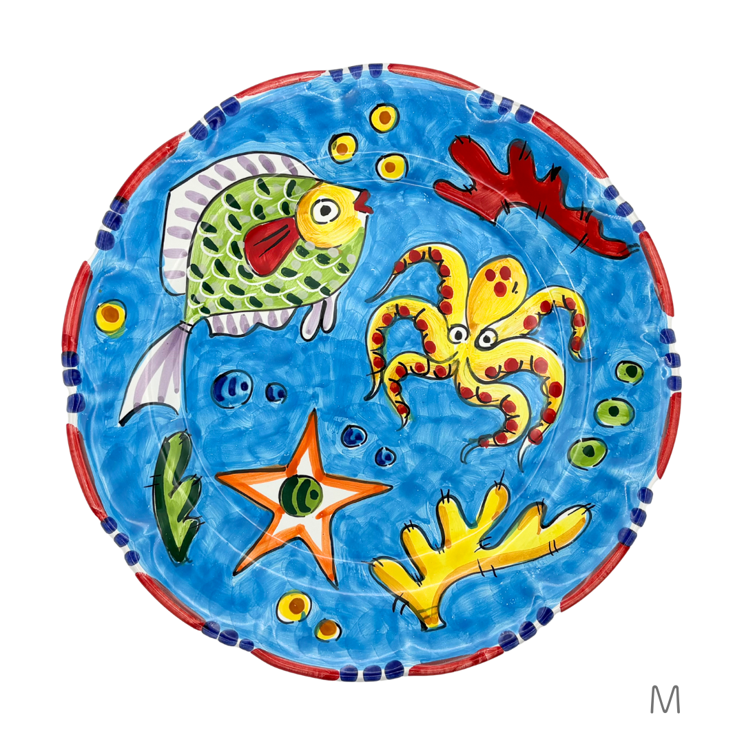 可愛らしい表情の魚やタコが描かれた、メインディッシュやワンプレートなどにおすすめのお皿です。
