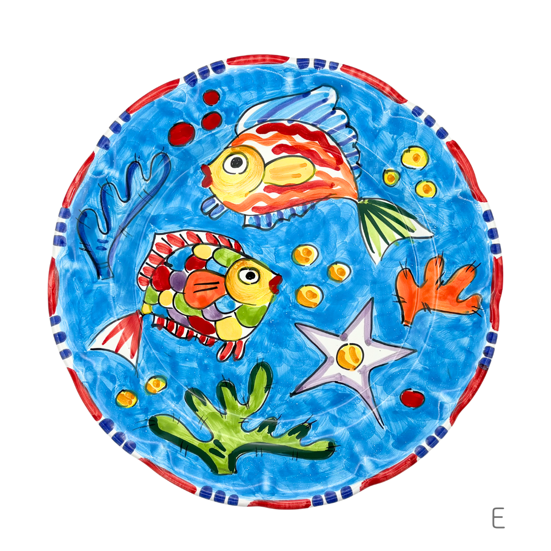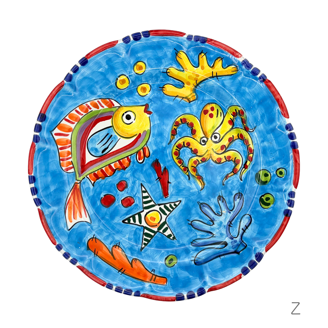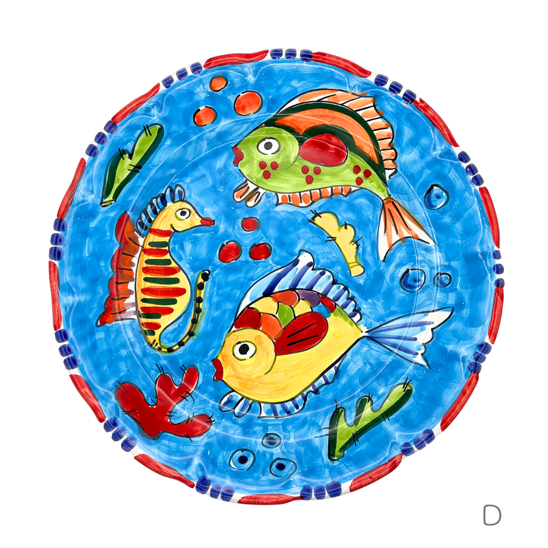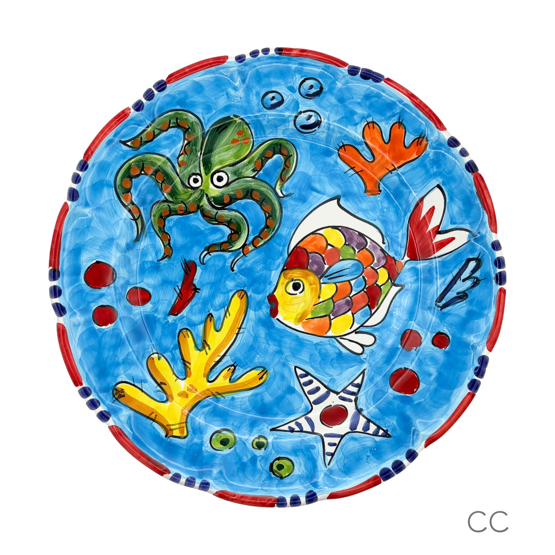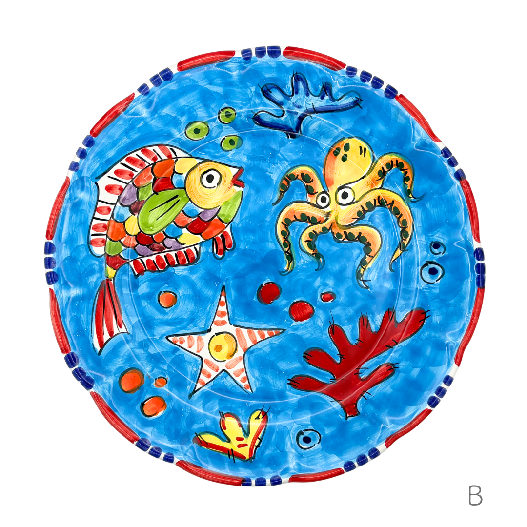 可愛らしい表情の魚やタコが描かれた、メインディッシュやワンプレートなどにおすすめのお皿です。