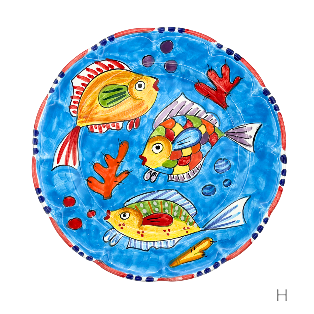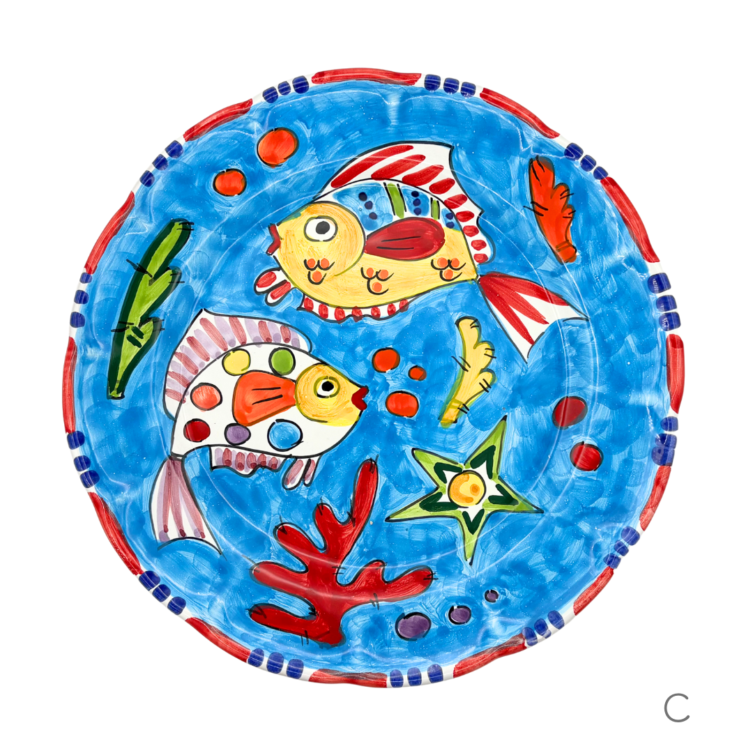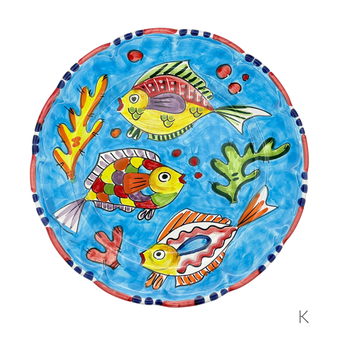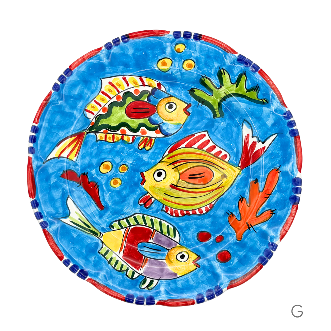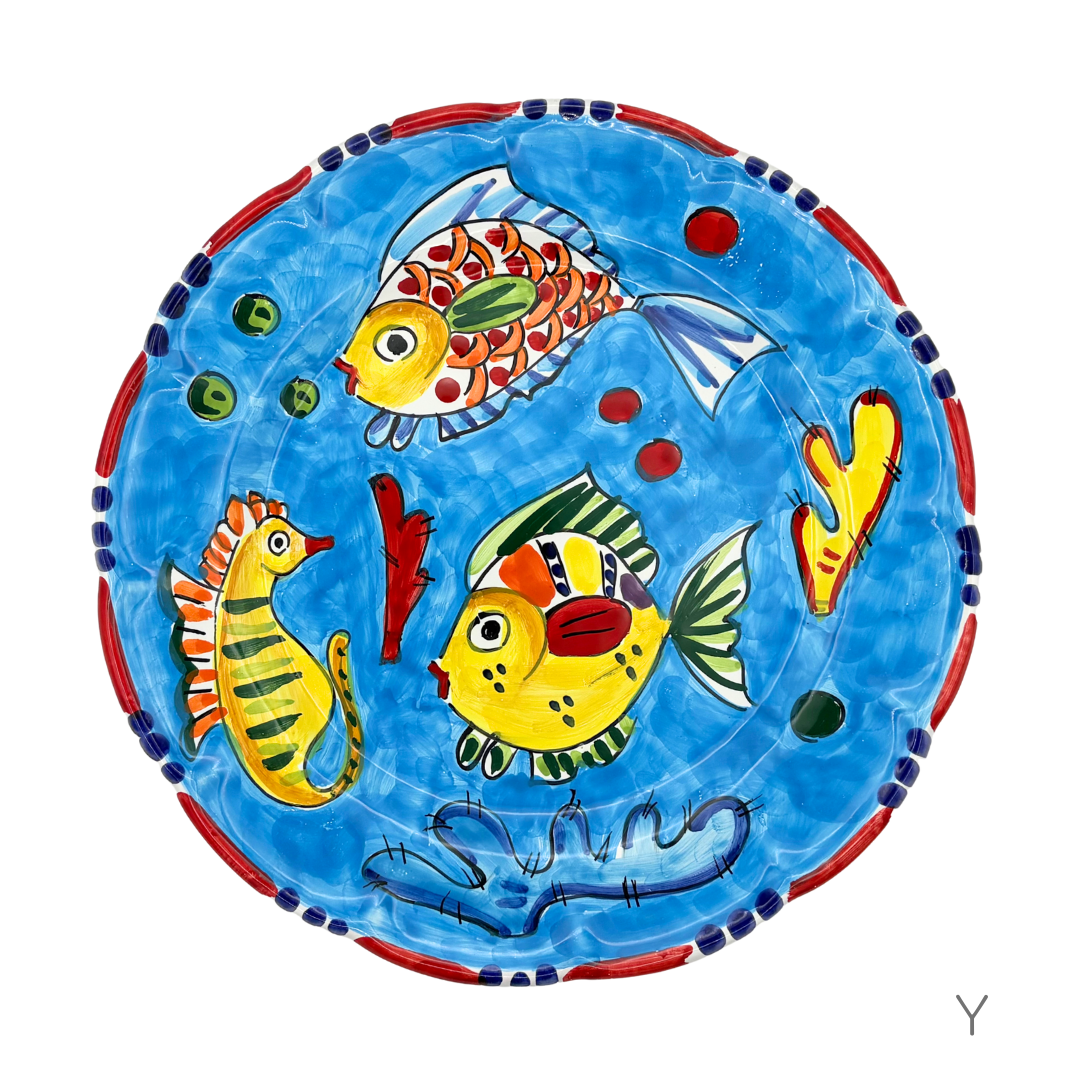 可愛らしい表情の魚やタコが描かれた、メインディッシュやワンプレートなどにおすすめのお皿です。