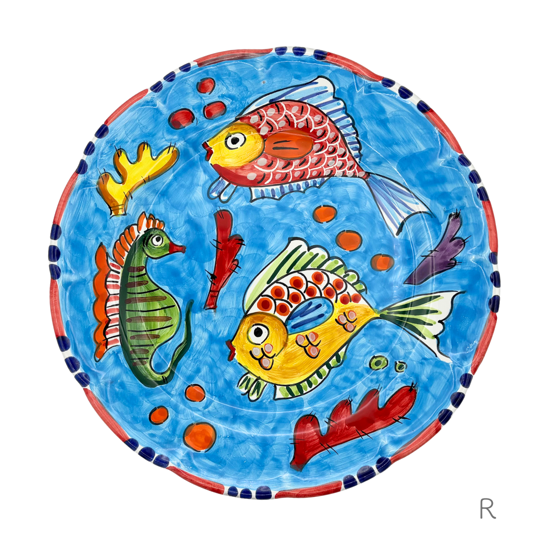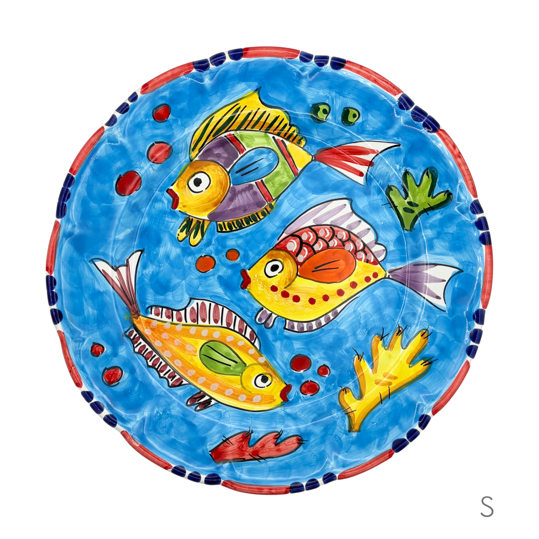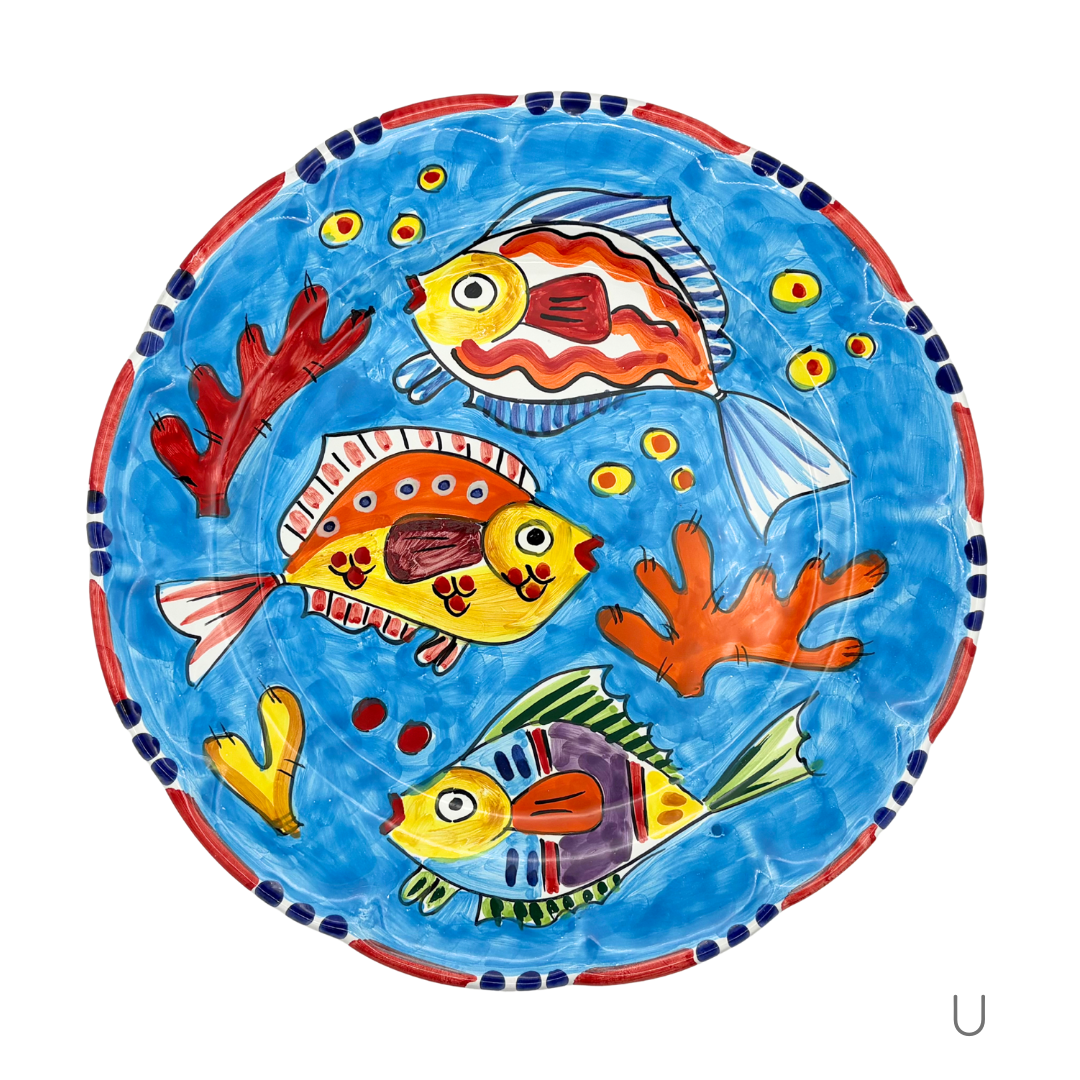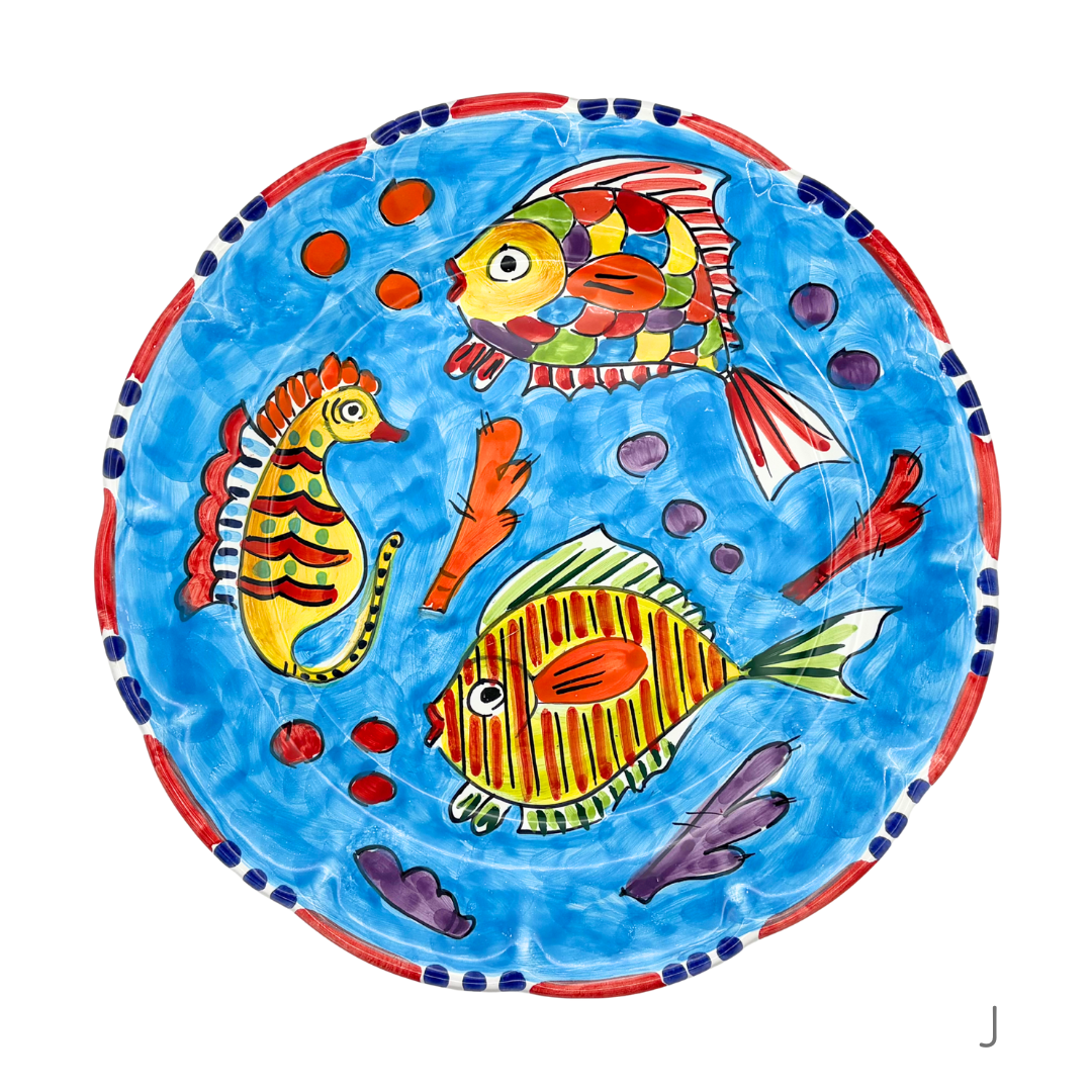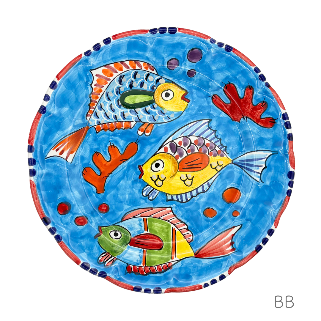 可愛らしい表情の魚やタコが描かれた、メインディッシュやワンプレートなどにおすすめのお皿です。
