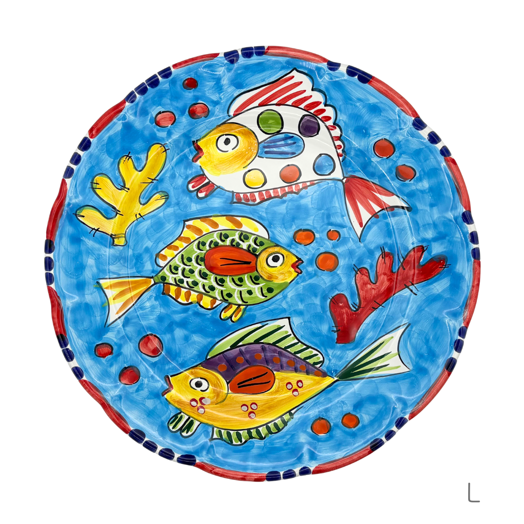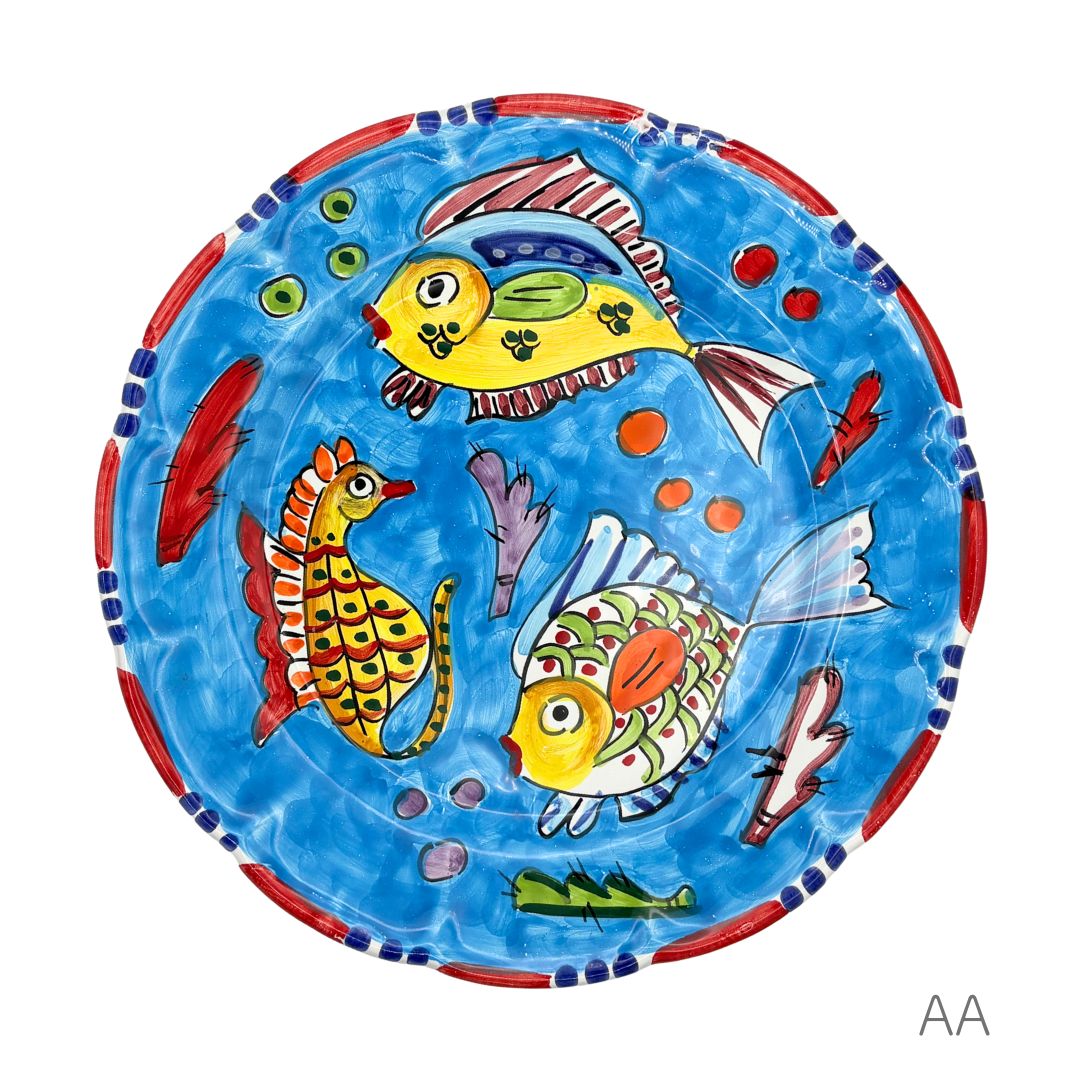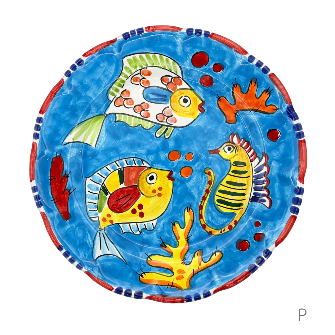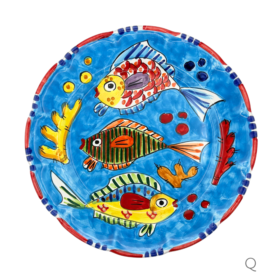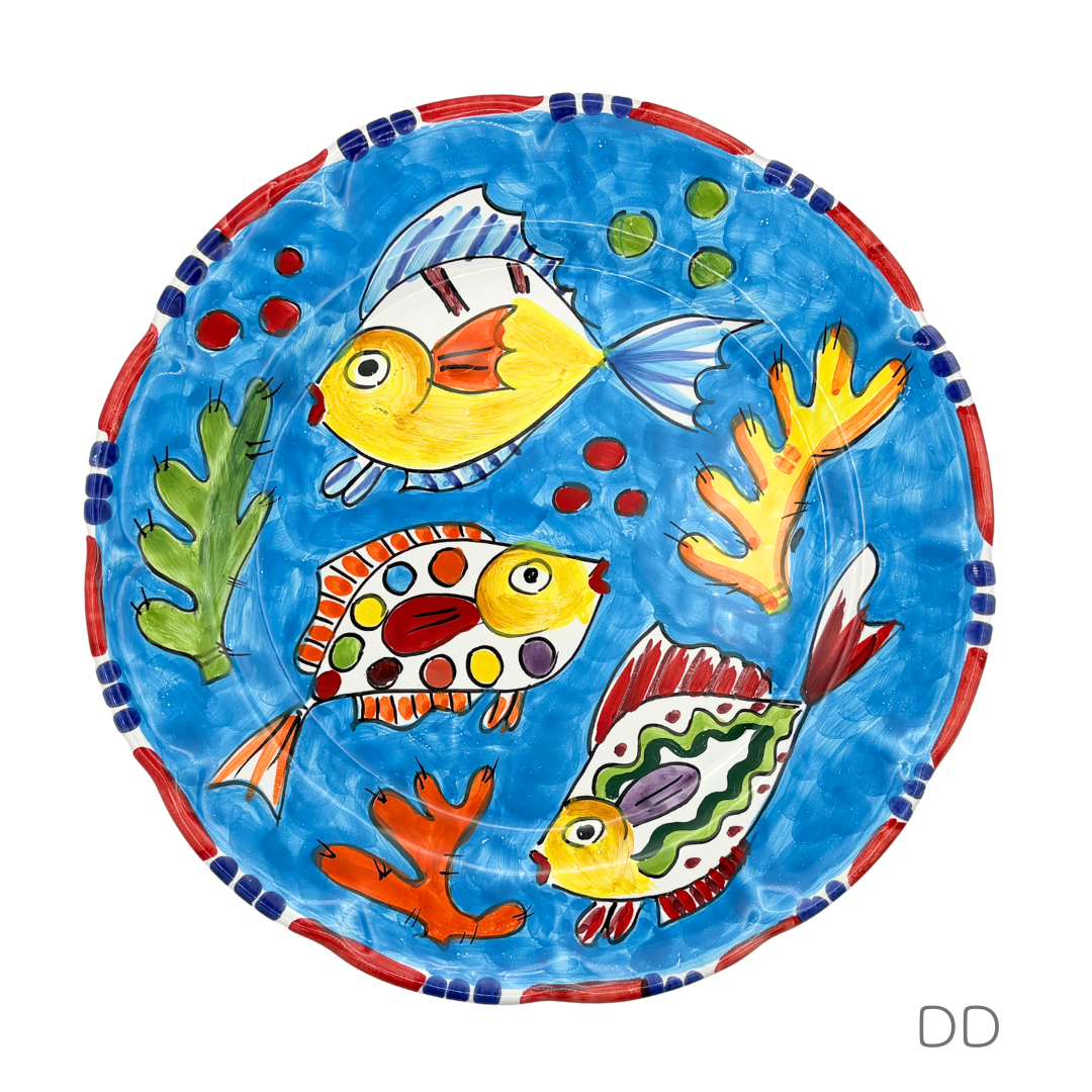 可愛らしい表情の魚やタコが描かれた、メインディッシュやワンプレートなどにおすすめのお皿です。