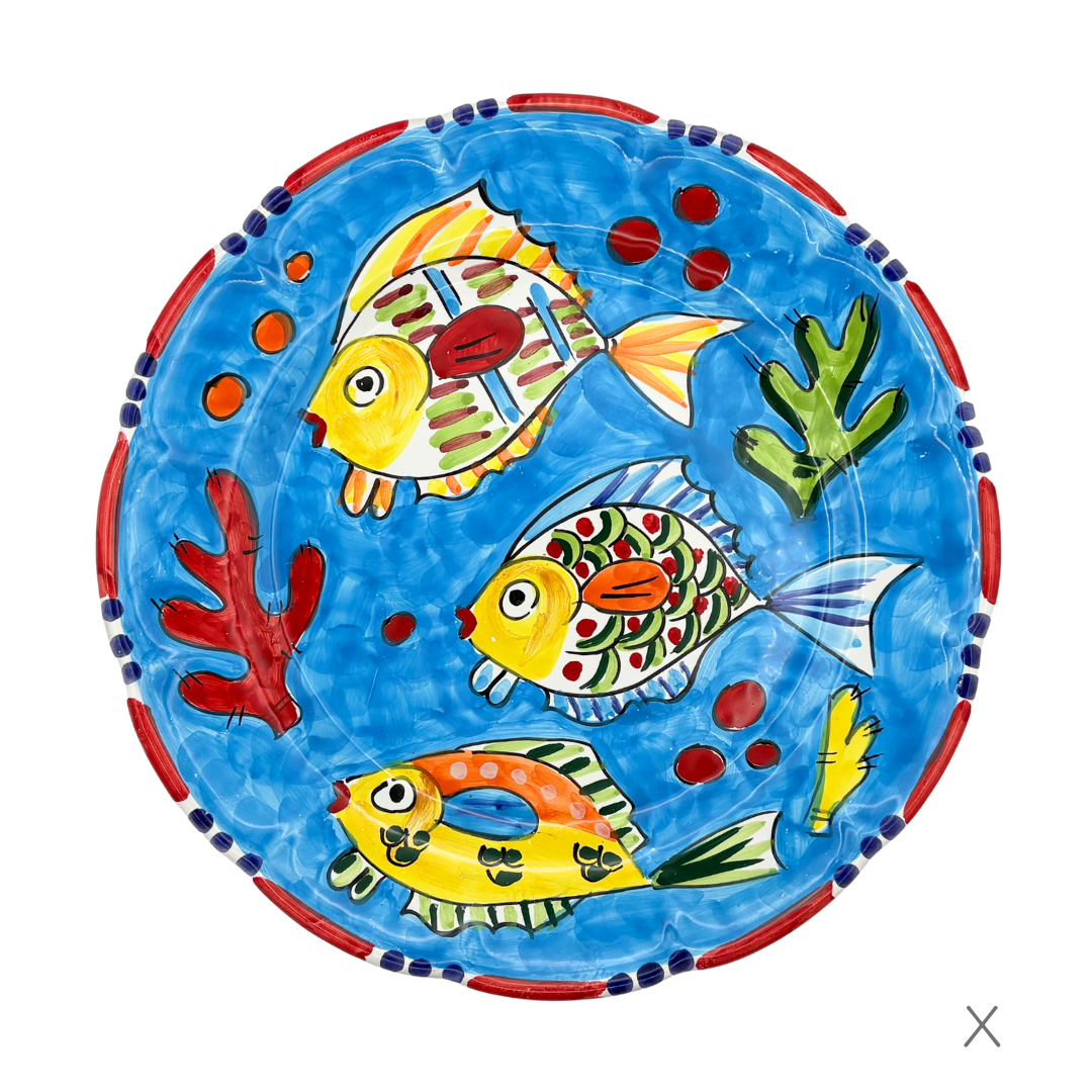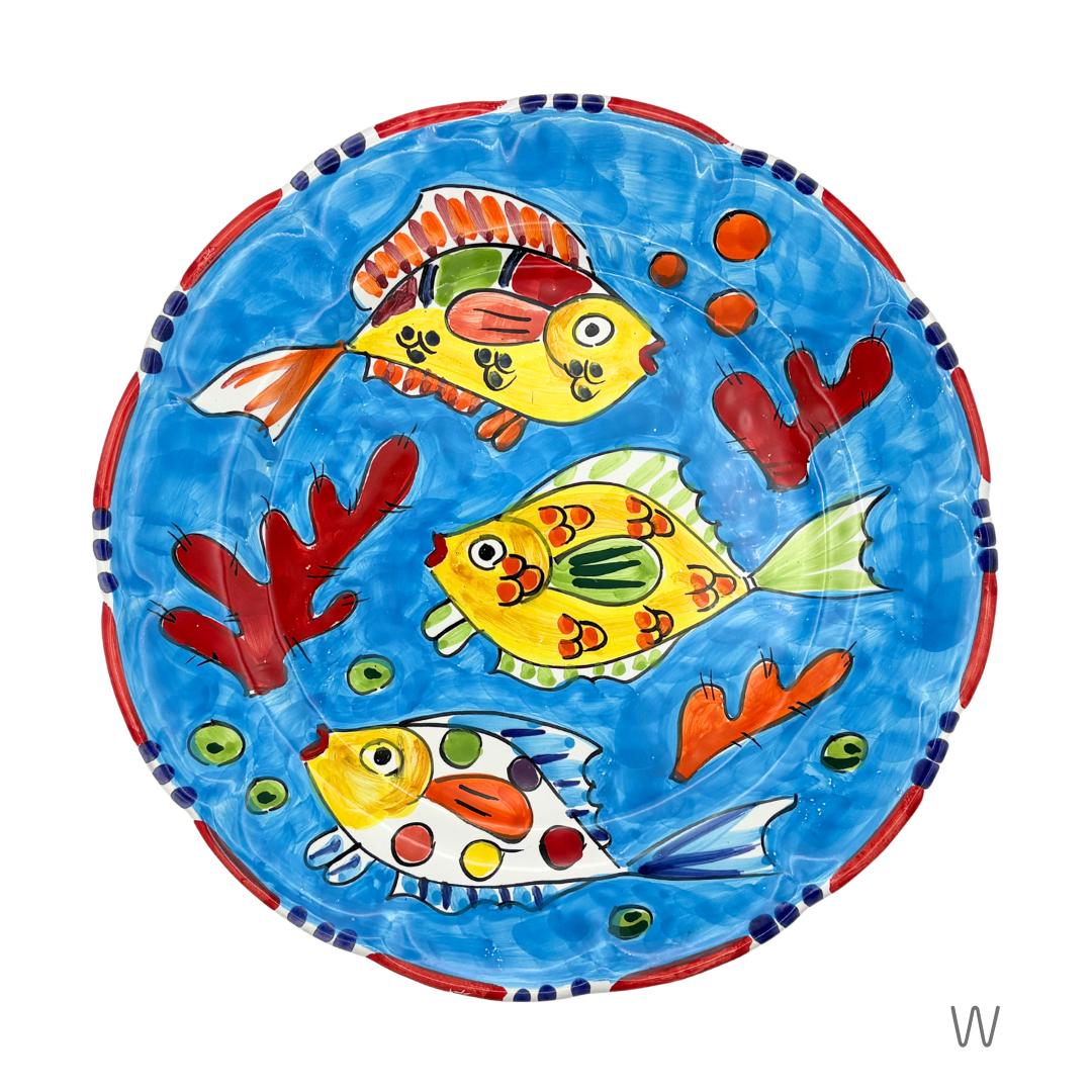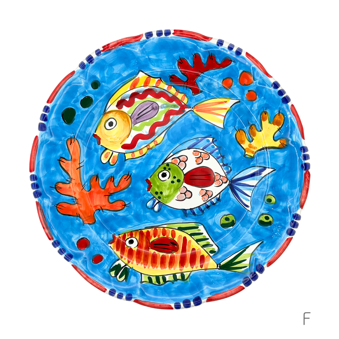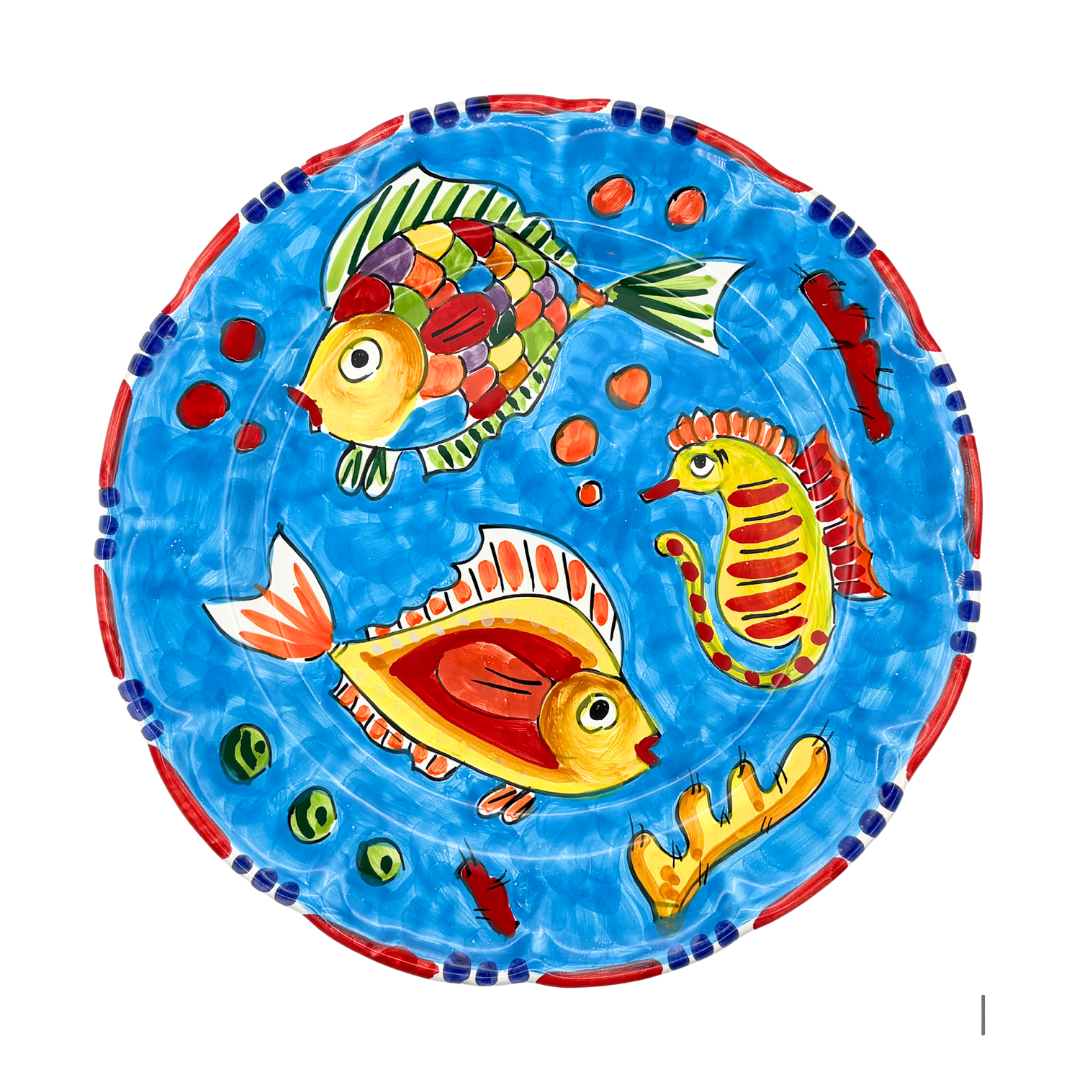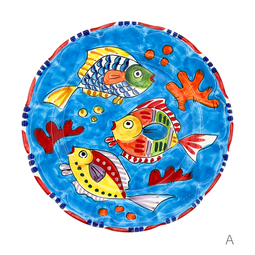 可愛らしい表情の魚やタコが描かれた、メインディッシュやワンプレートなどにおすすめのお皿です。