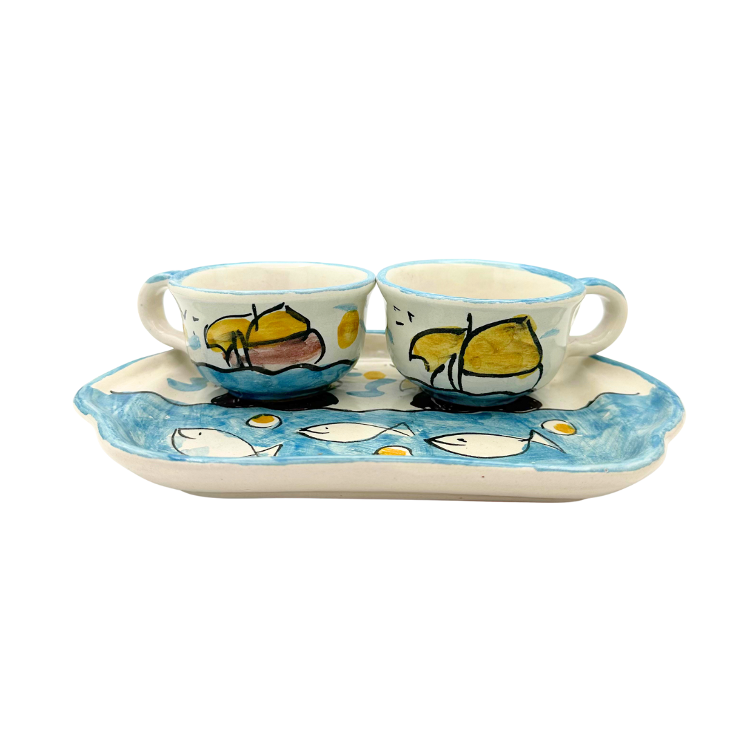 エスプレッソカップ2個、トレイのセットです。