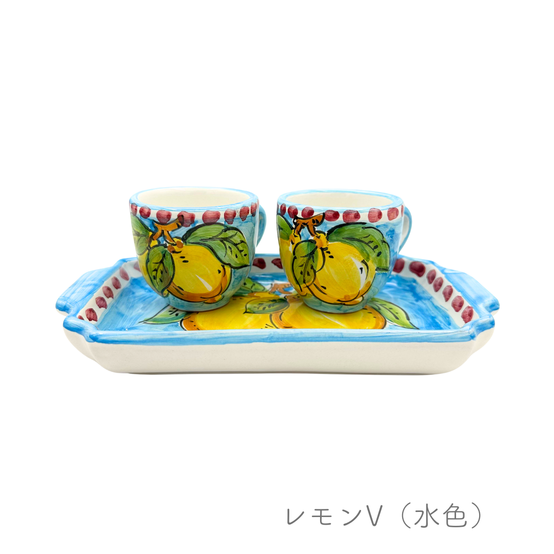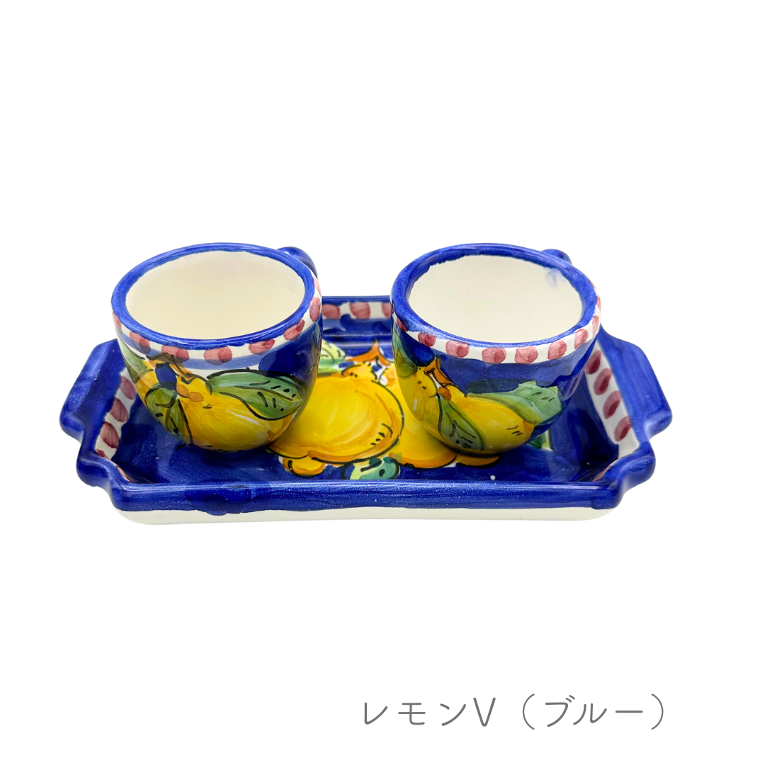 エスプレッソカップ2個、トレイのセットです。