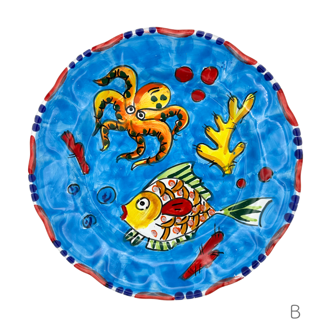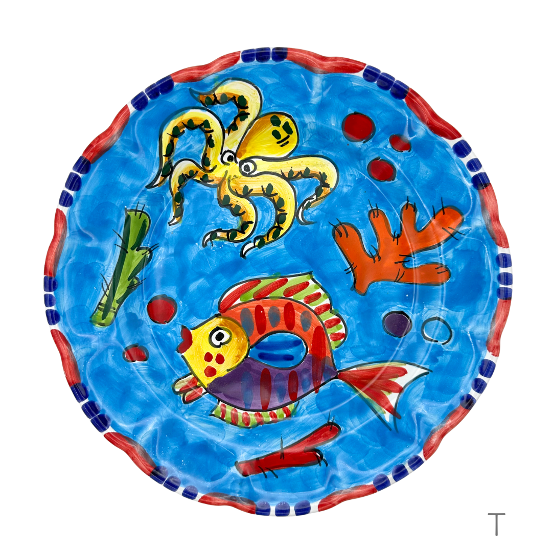 可愛らしい表情の魚やタコが描かれたランチプレートです。