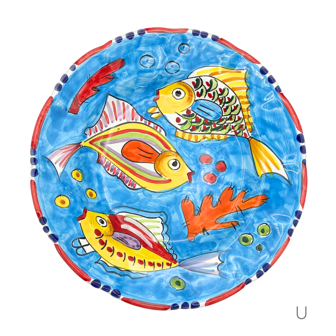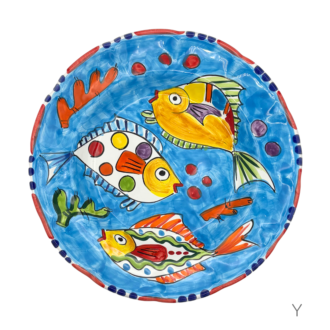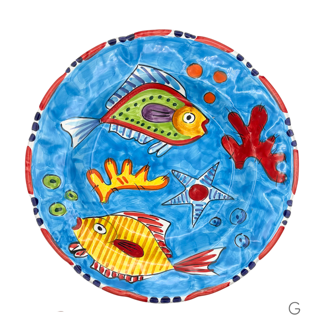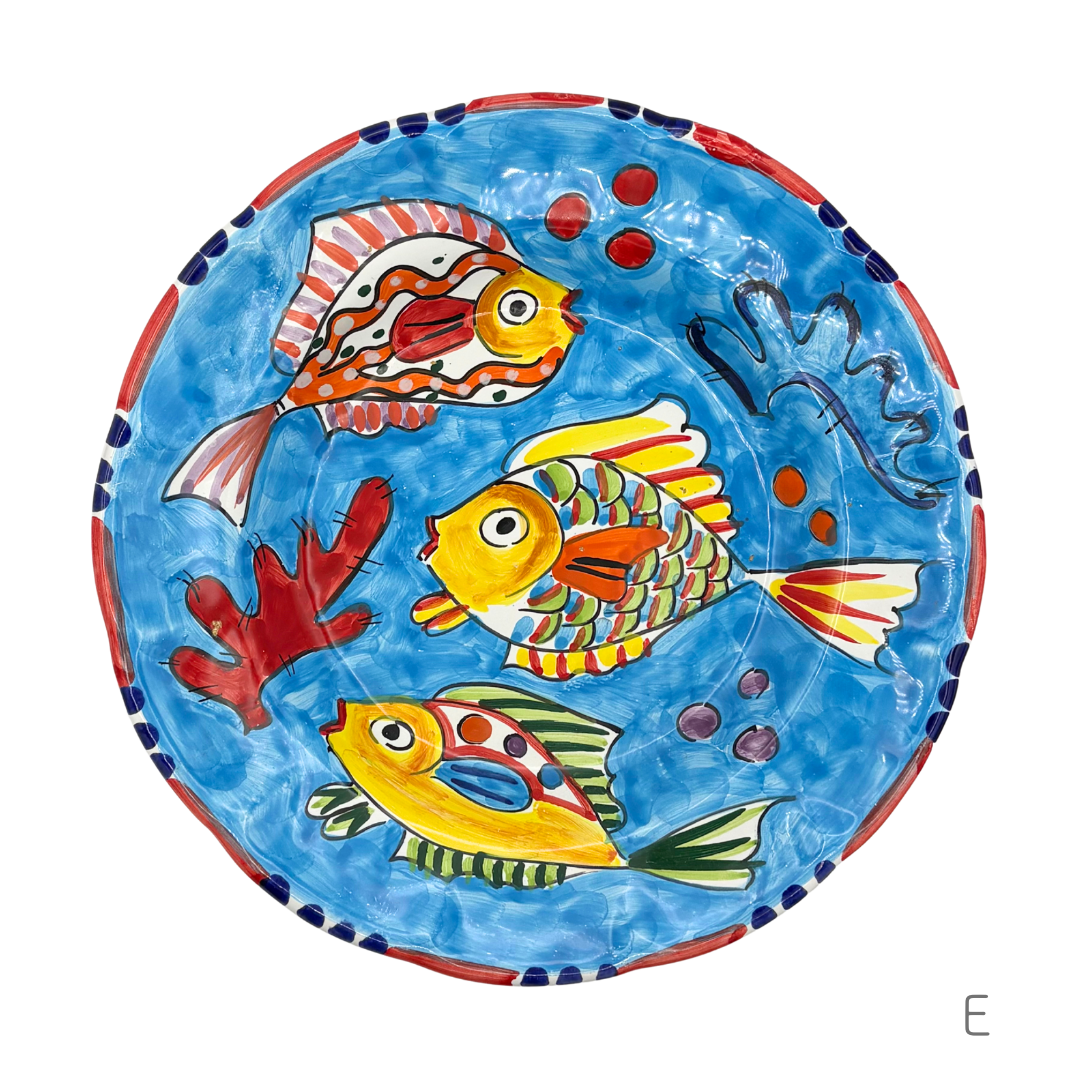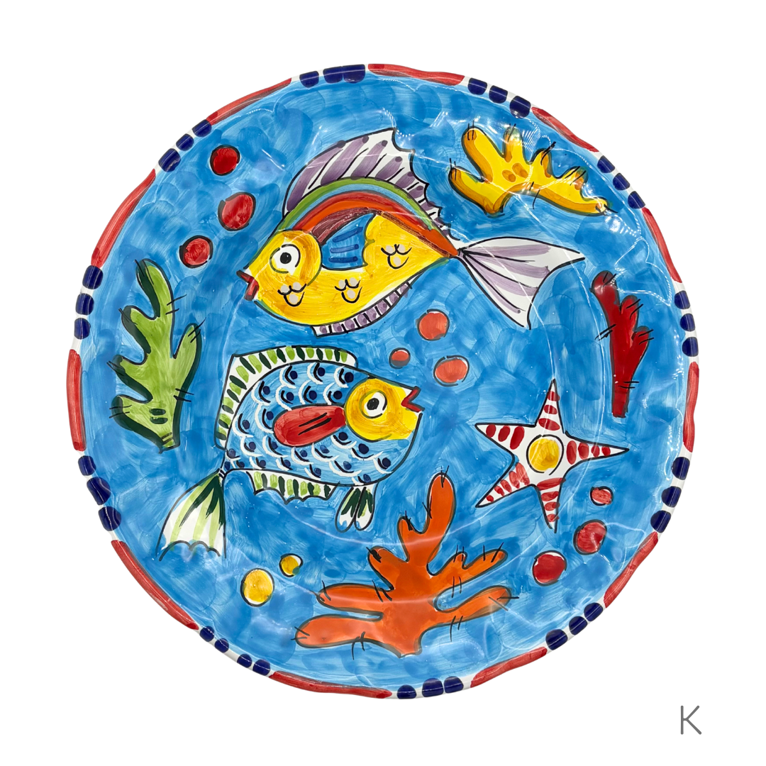 可愛らしい表情の魚やタコが描かれた、パスタやカレー、シチューなどにぴったりのお皿です。