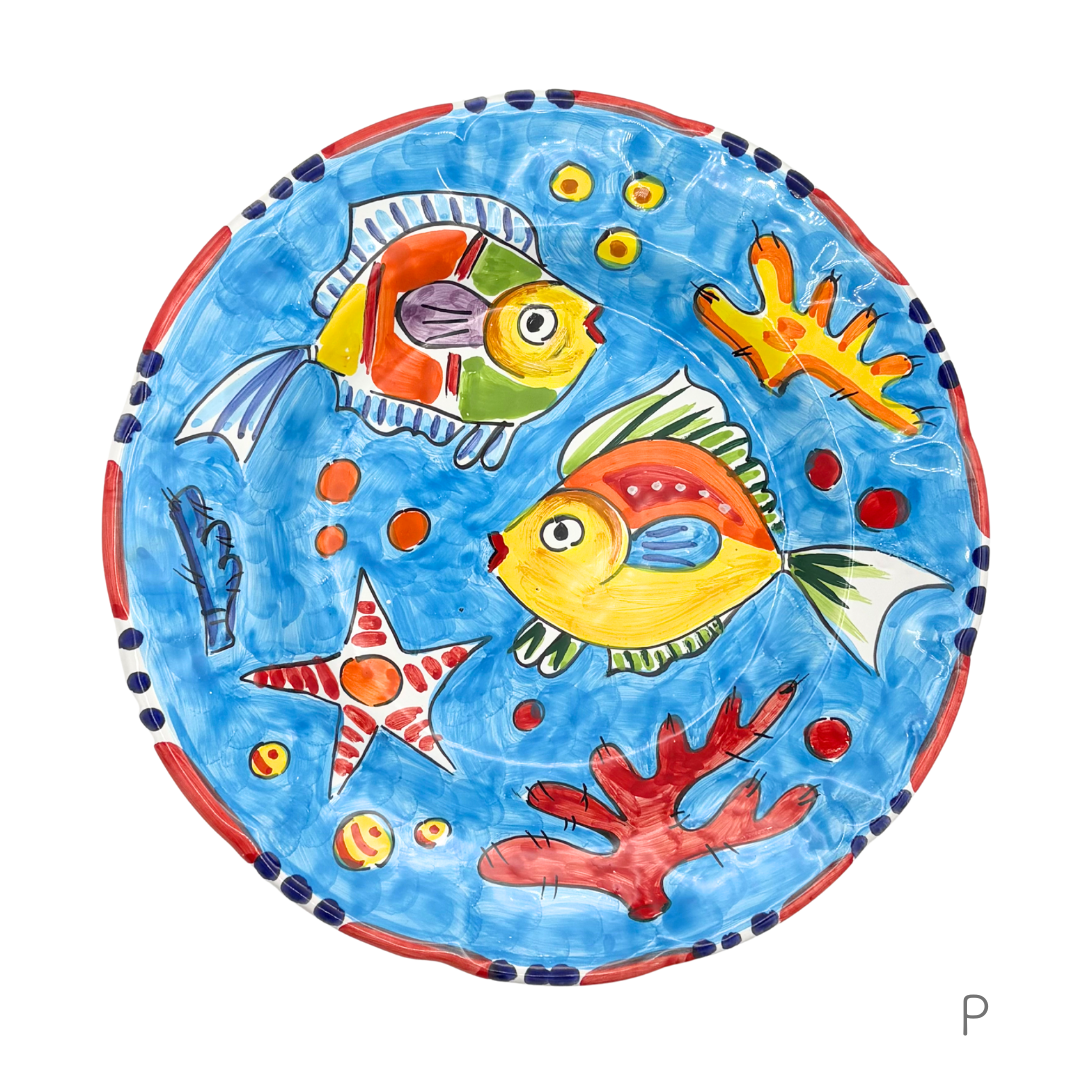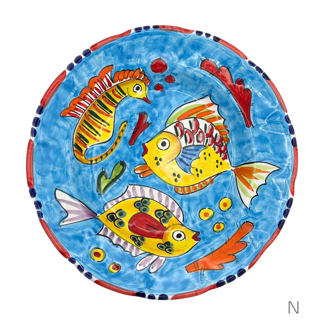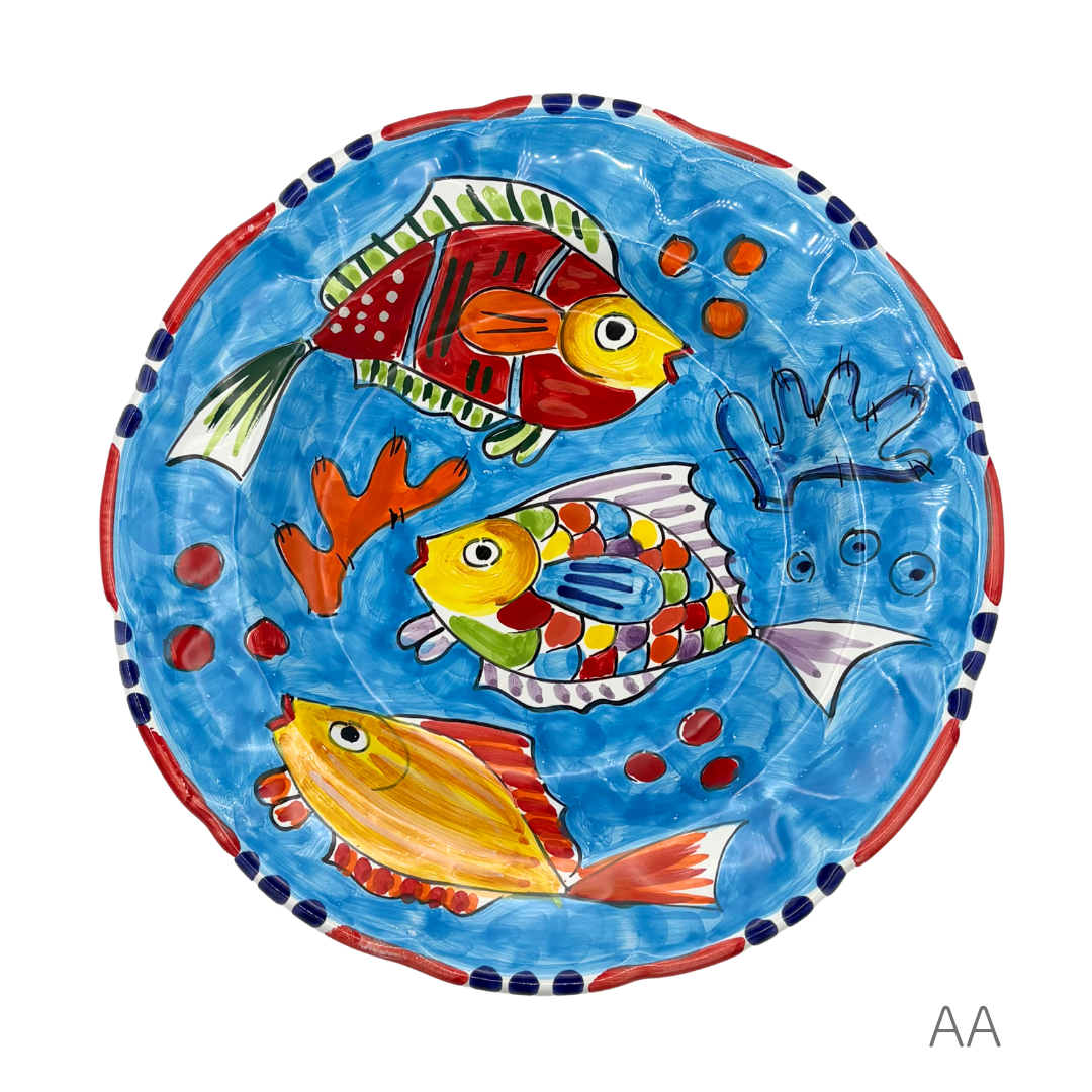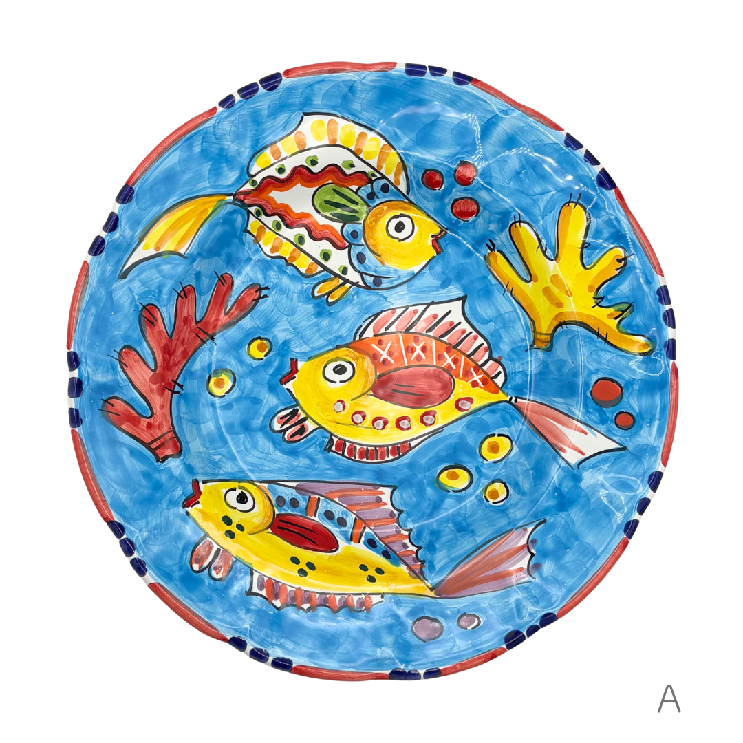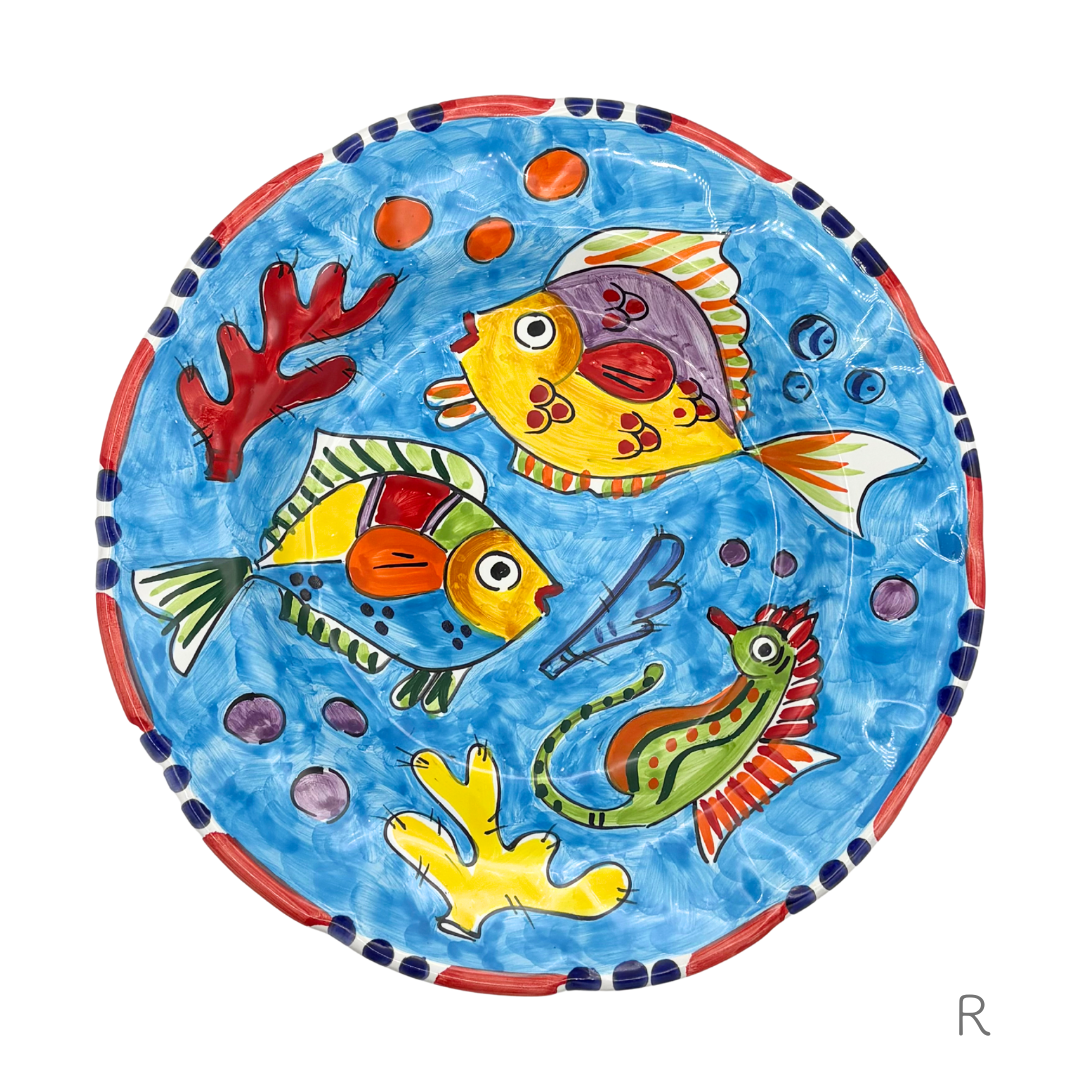 可愛らしい表情の魚やタコが描かれた、パスタやカレー、シチューなどにぴったりのお皿です。