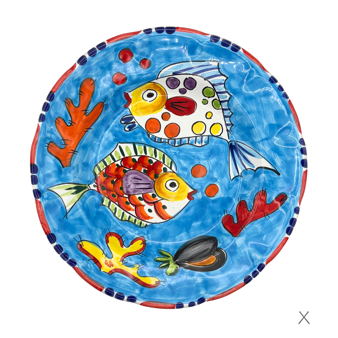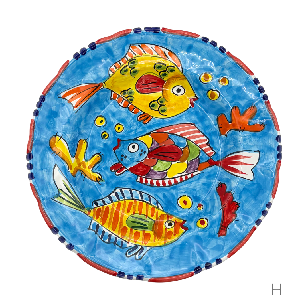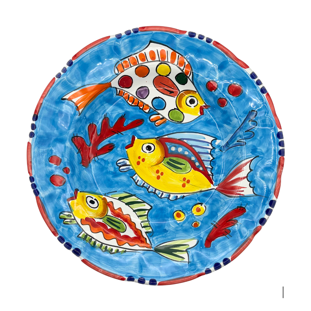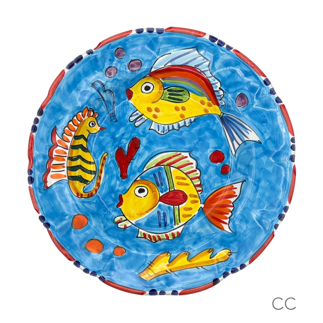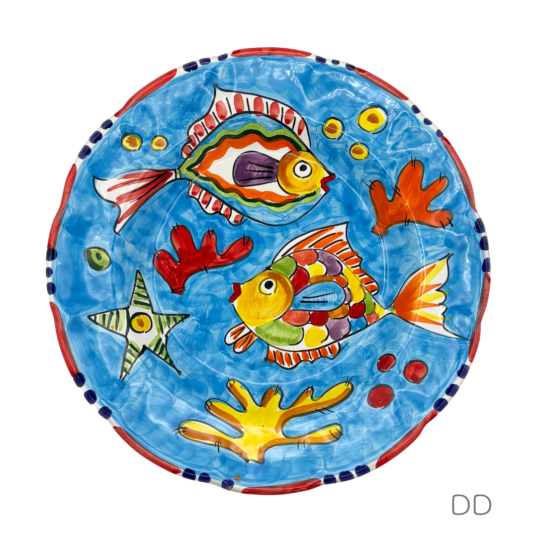 可愛らしい表情の魚やタコが描かれた、パスタやカレー、シチューなどにぴったりのお皿です。