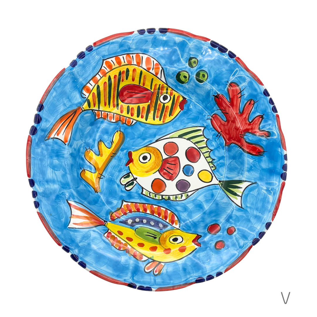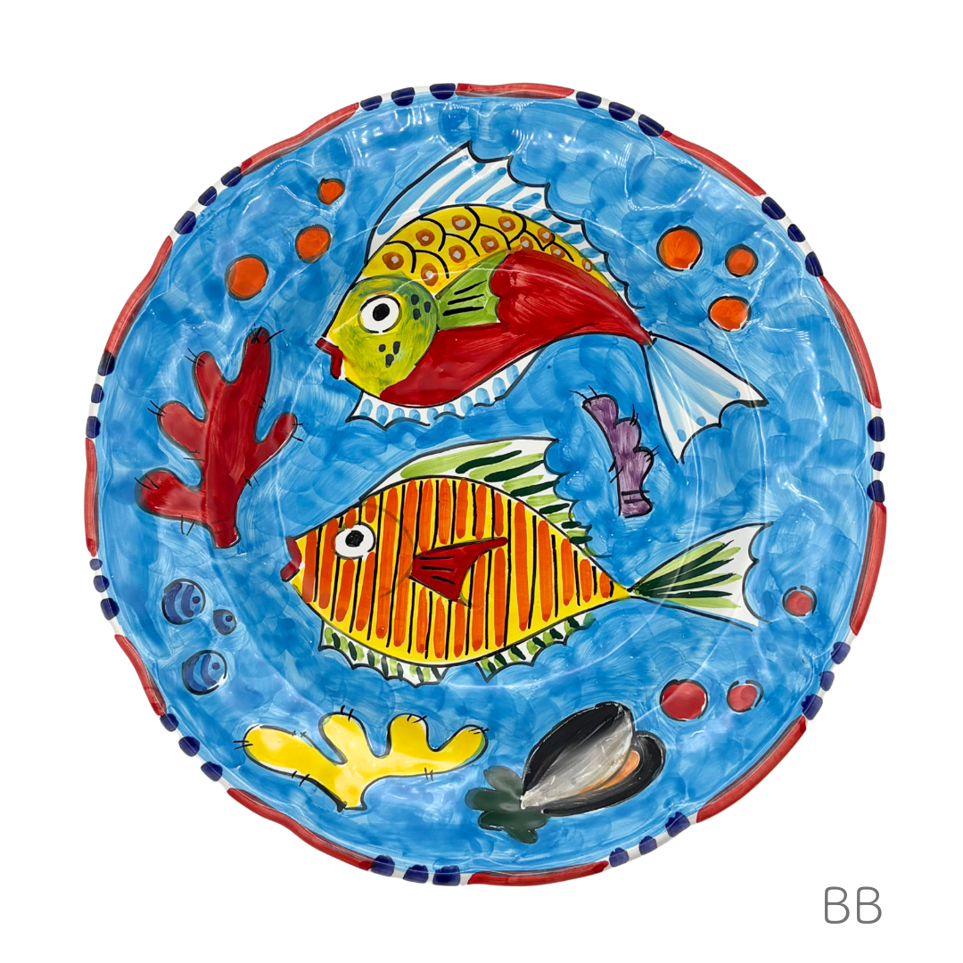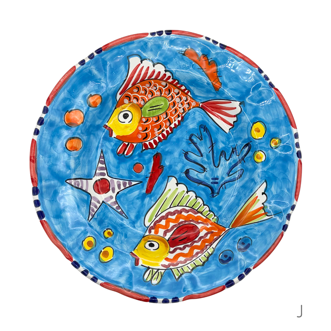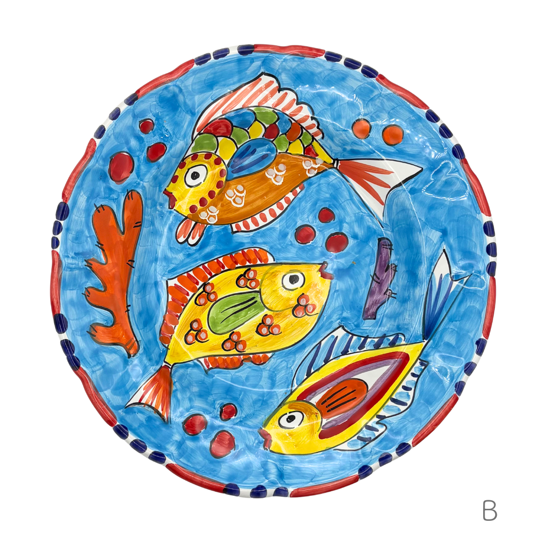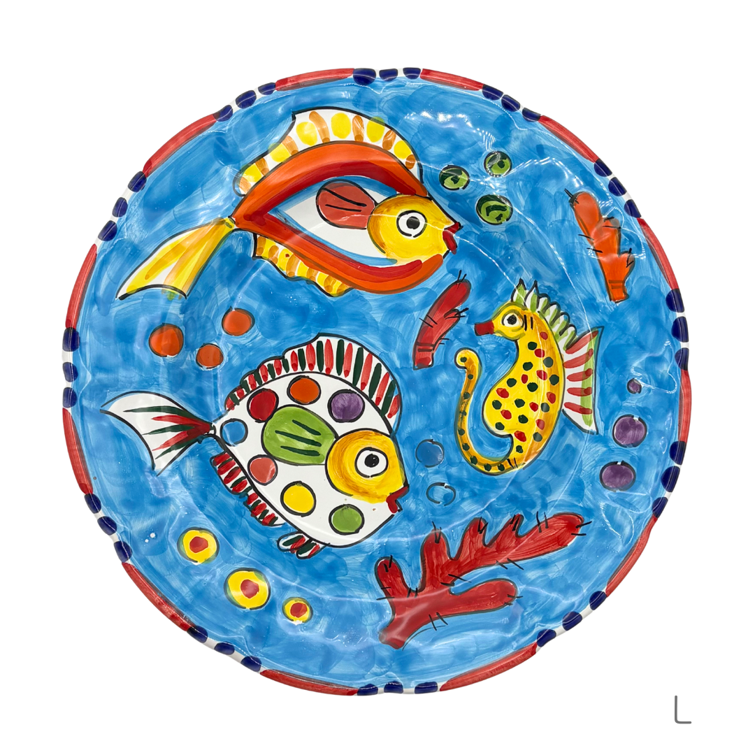 可愛らしい表情の魚やタコが描かれた、パスタやカレー、シチューなどにぴったりのお皿です。